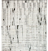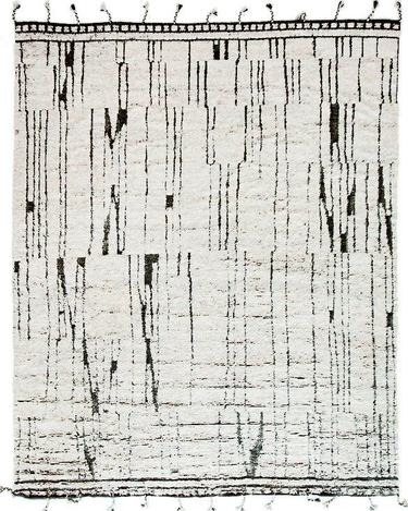 Crafted meticulously by skilled artisans in Afghanistan, this handwoven rug showcases the unparalleled beauty of premium New Zealand wool. Its crisp white field is juxtaposed with abstract lines, weaving a tale of contemporary elegance. The design plays with contrasting high and low piles that adds a tactile element of interest to its visual appeal. A fusion of traditional craftsmanship and modern artistry, this rug is a statement piece for any space.