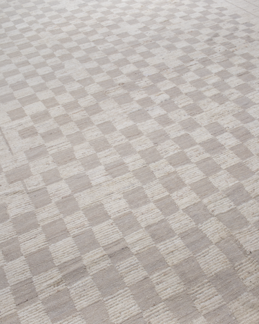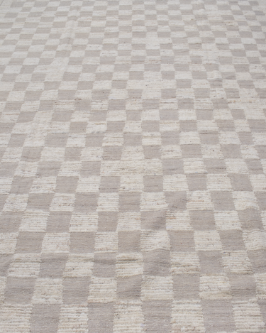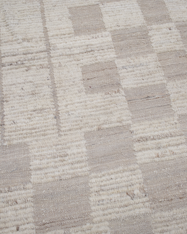 Our meticulously crafted handknotted Ellis Rug delivers a new dimension of style with its edgy checkered motif. Bathed in a soft neutral gray colorway, this rug exudes versatility and classic patterning. The high-low interplay adds visual intrigue but also creates a captivating texture that begs to be touched.
