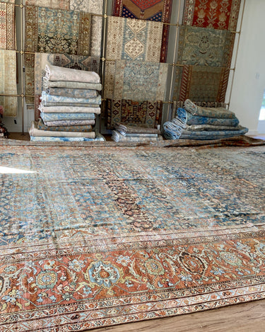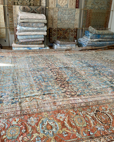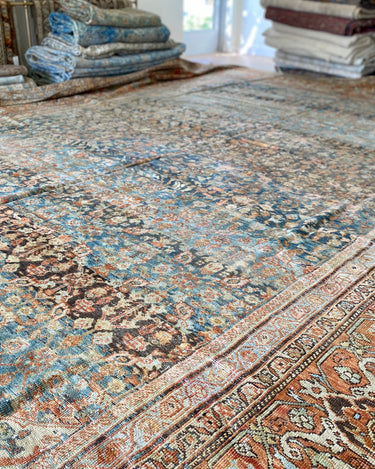 Palace size grand antique Persian Mahal. A highly sought after all over herati pattern in a rich array of colors.