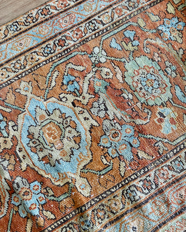 Wear notes: this rug has been expertly altered from its original design that featured a large central medallion. The medallion was removed knot by know and the original threads were used to reweave a continuation of the herati pattern.
