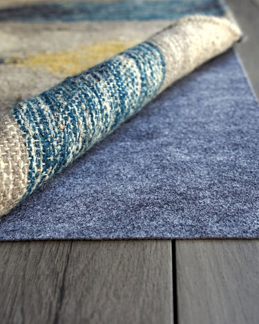 - A low profile, high performance rug pad with strong gripping power, recommended for preventing rugs from slipping in high traffic areas. This premium quality rug pad combines a thin layer of felt with a solid natural rubber backing. The coarse felt upper layer is designed to grab and hold the bottom of your rug to prevent rug shifting, bunching & buckling. A solid natural rubber backing keeps your rug firmly anchored to the floor while offering more floor coverage over traditional waffle styled rug pads.