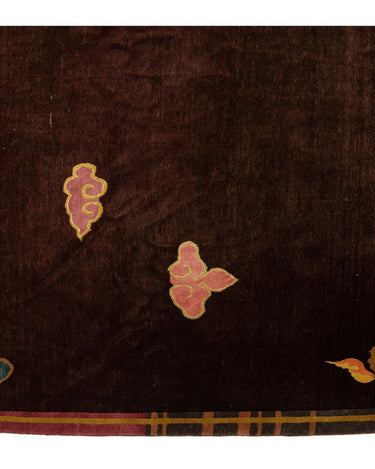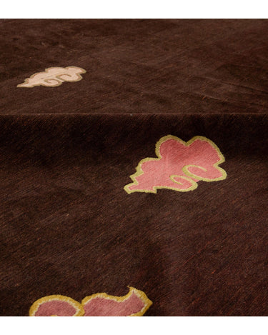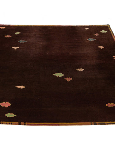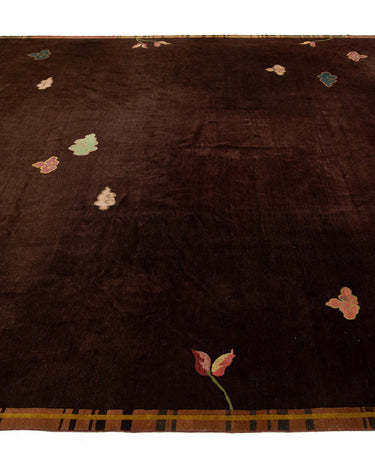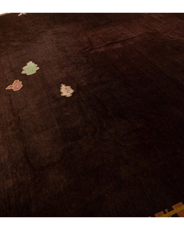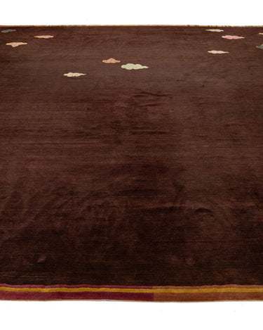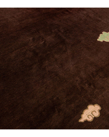 This exquisite Nepalese hand-knotted wool rug features a captivating brown color scheme with fine golden and multicolor accents that complement its elegant all-over design.