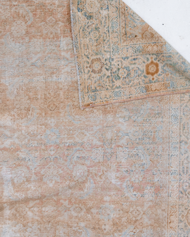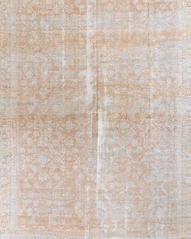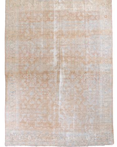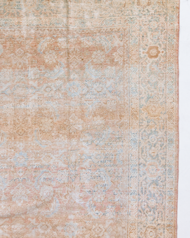Beautifully worn antique Mahal with a soft toned blush field and an all over herati pattern.