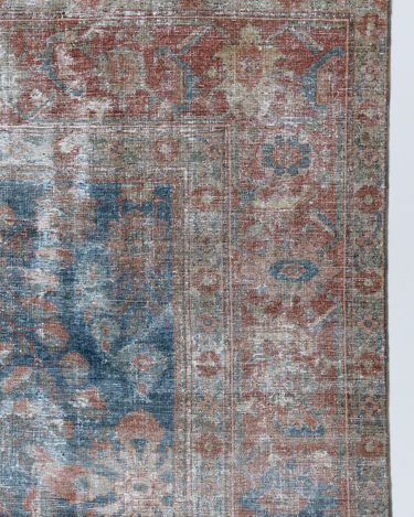 Beautiful old Sarouk woven in the early 20th century with lovely even distressing.