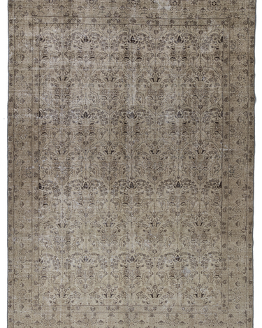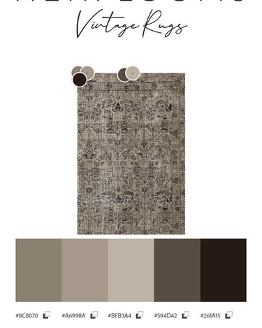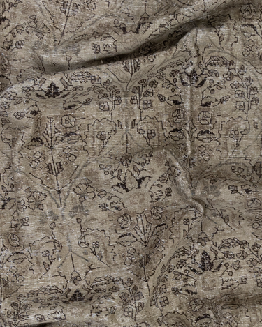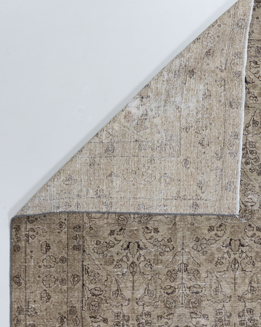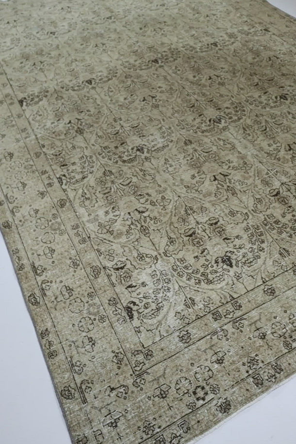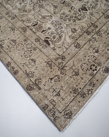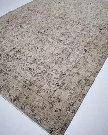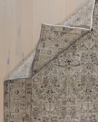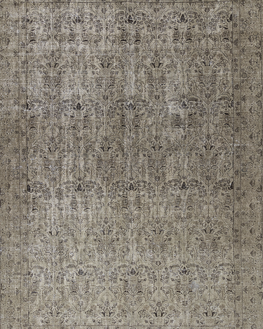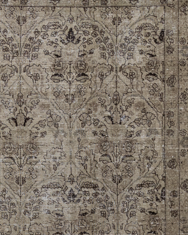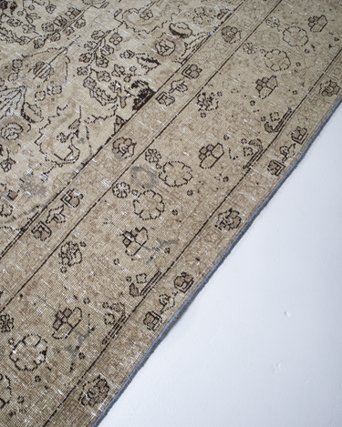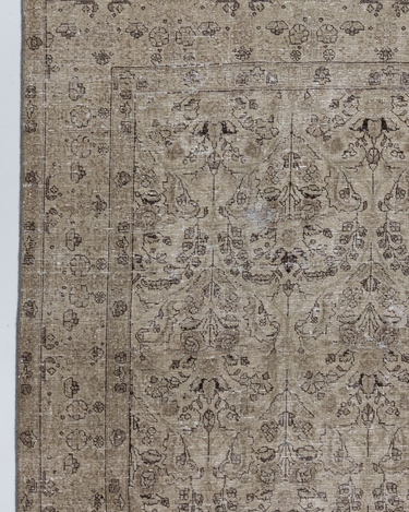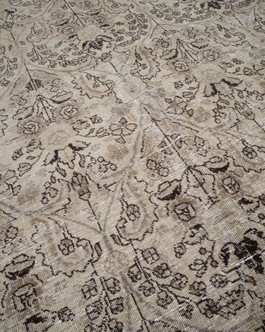 Vintaglio Persian Tabriz with a subtle masculine feel. Earthy color palette of warm beiges with black accents. Safe for high traffic.