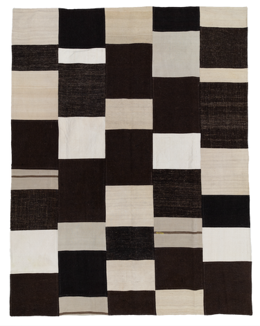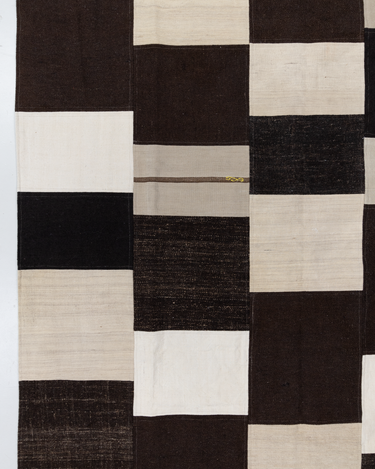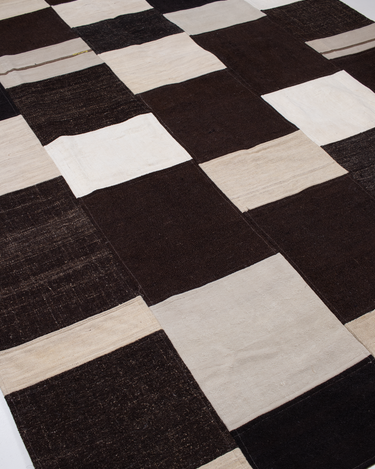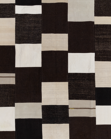 Patchwork kilim rug made from vintage hemp and goat hair rugs.