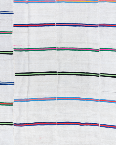 Fabulous and fun vintage kilim with stripes in various neon tones that are masterfully combined.