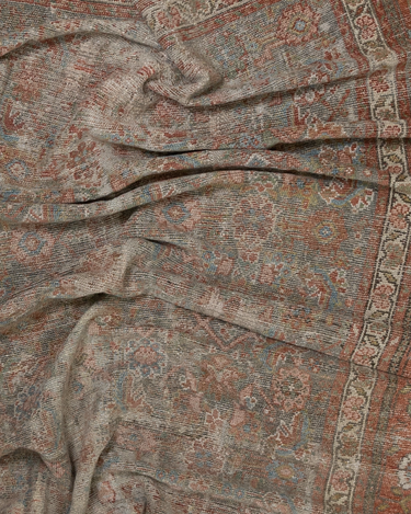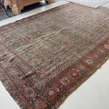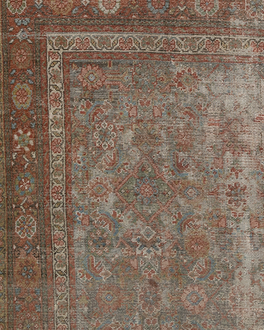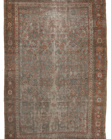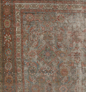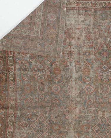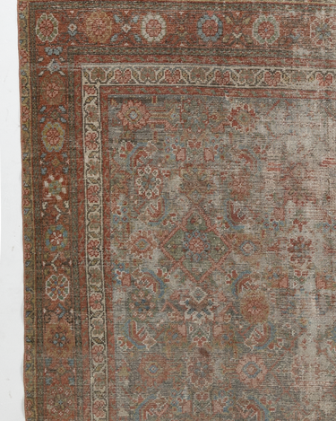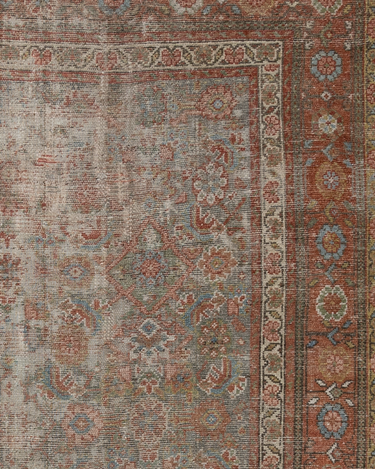 Late 19th century wool on wool antique Mahal with a rustic worn look. Very soft underfoot with softened colors.