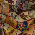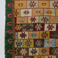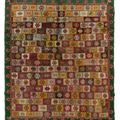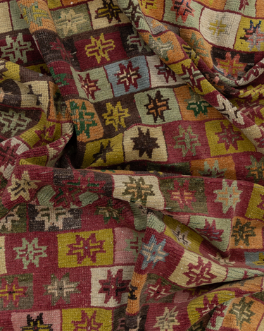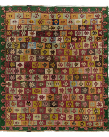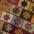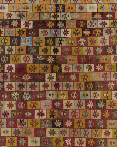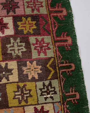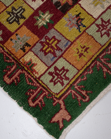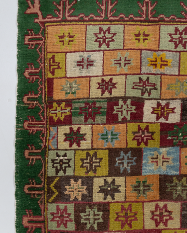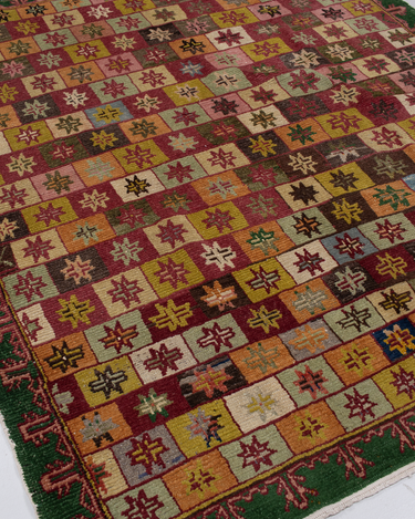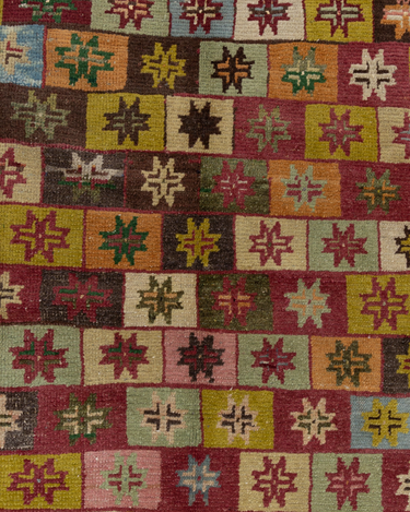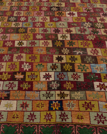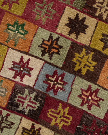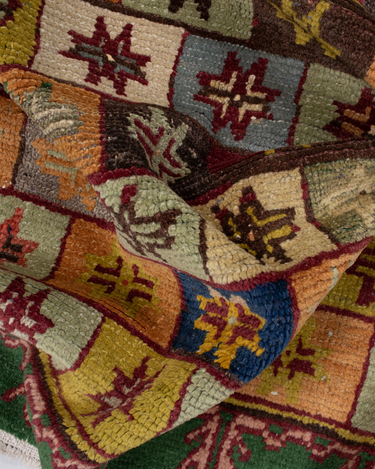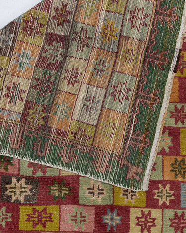Fun with bold colors, this Turkish rug features a unique design and full pile.
