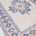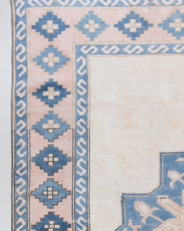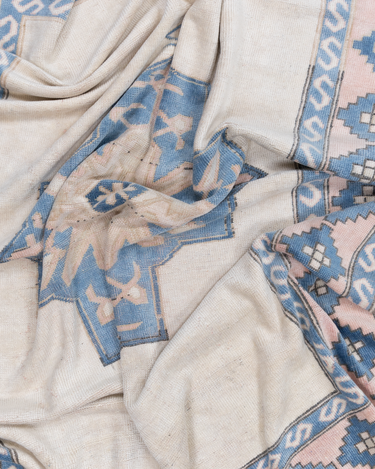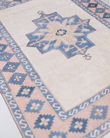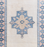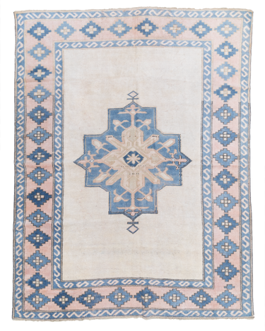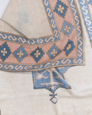 Soft silky wool pile with a lovely color palette, this vintage Turkish Oushak was skillfully woven by hand during the 2nd quarter of the 20th century.