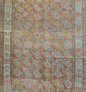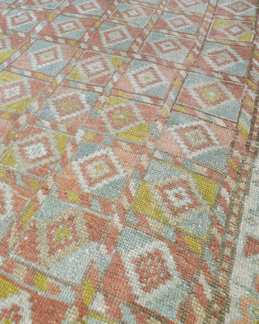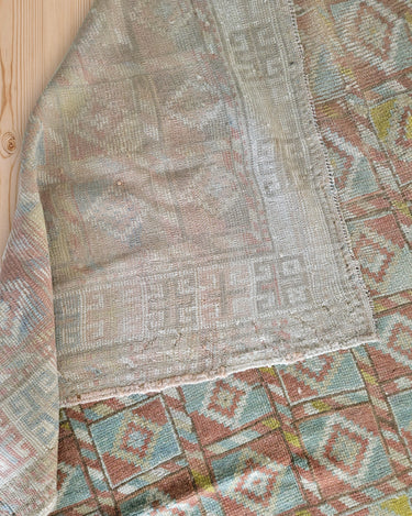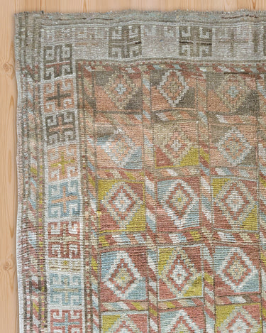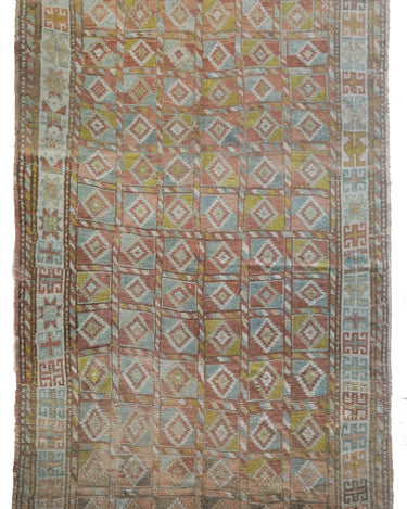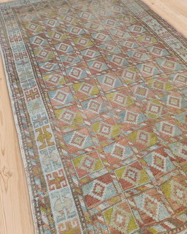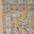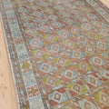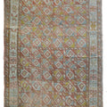 Fun and colorful vintage Kurdish rug with an interesting geometric design. Soft underfoot, good condition with even fading.