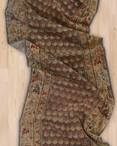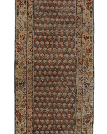 Beautiful old Persian runner with rich warm colors and an all over boteh pattern. Good condition with minor wear consistent with age.