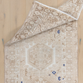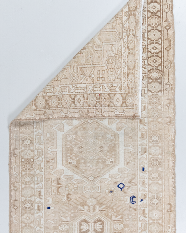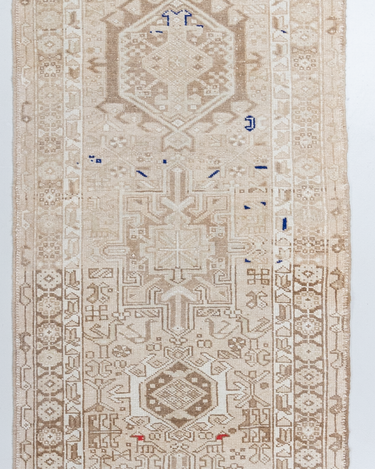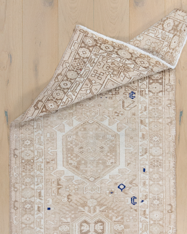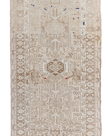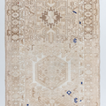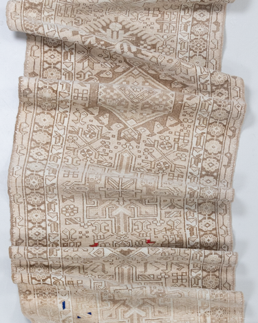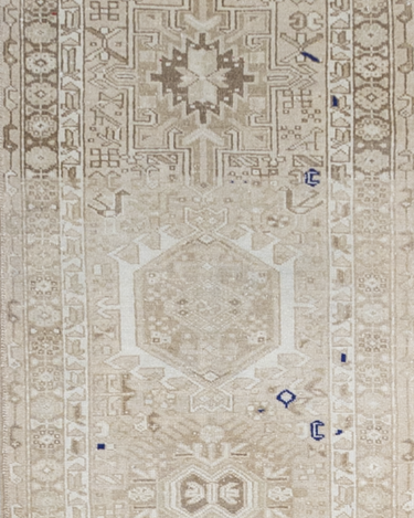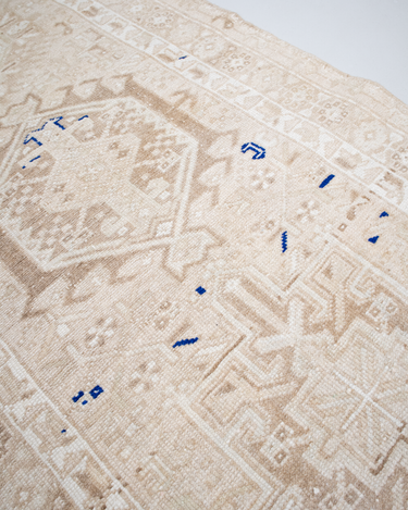 Neutral Persian Karaja with a sandy beige color way and pops of blue and red.