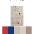 Colors: tan, cream, pop of blue and red