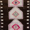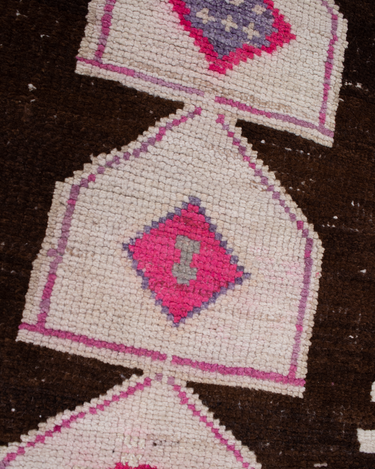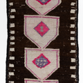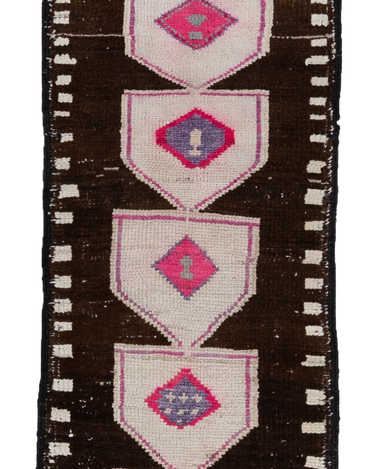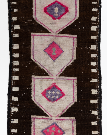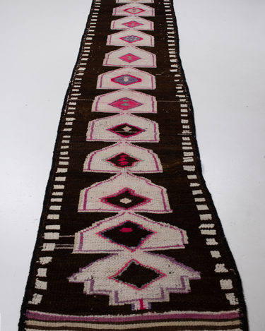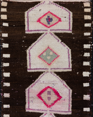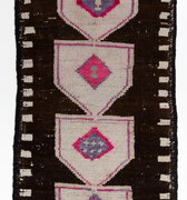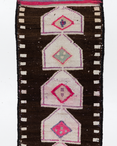This vintage Herki Runner Rug was crafted in the mid-20th century and features a distinct design believed to depict tents.
