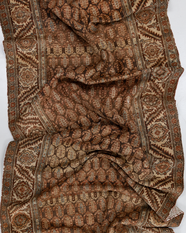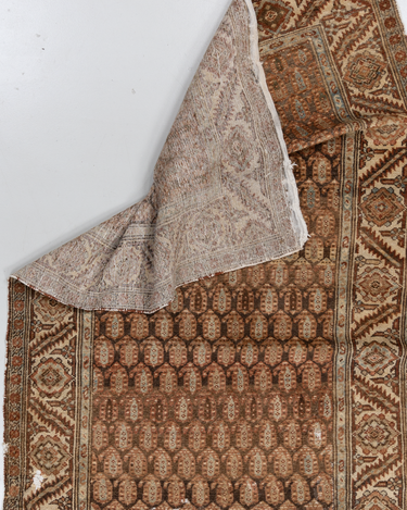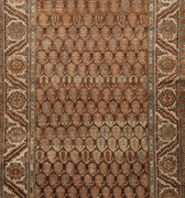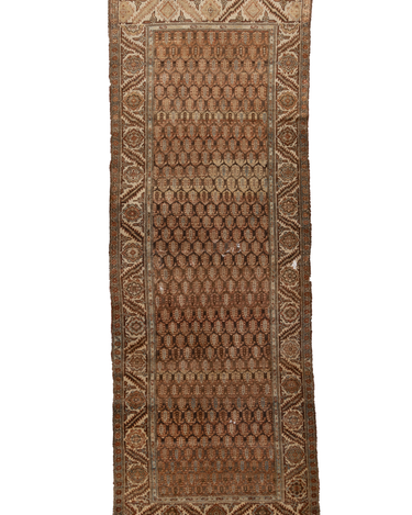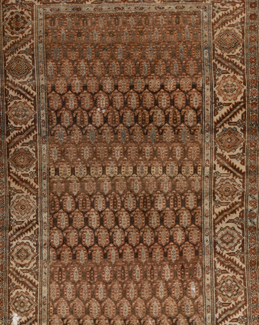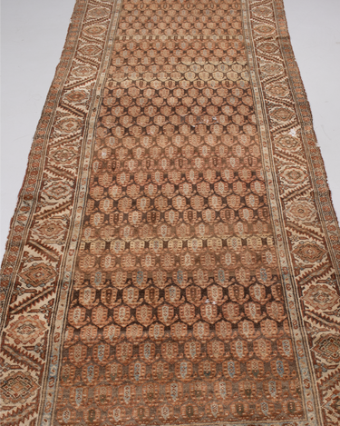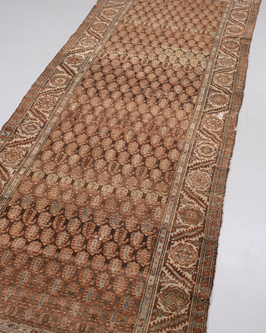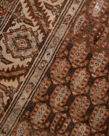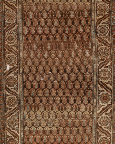 Early 20th century Malayer runner with a warm, fall toned color palette. Silky, high quality wall and a wonderful all over boteh pattern. Well suited for high traffic areas.