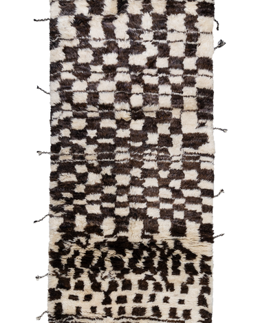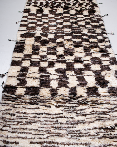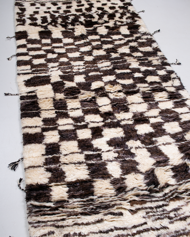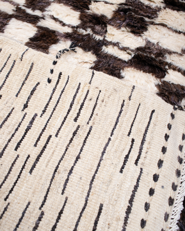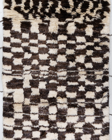 Our meticulously crafted handknotted Zenith rug delivers a new dimension of style with its edgy checkered motif. This rug features a thick full pile of high quality New Zealand wool with a pale cream base and deep brown design.