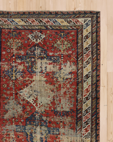Gorgeous antique Soumak with lovely wear. Traditional weaving technique with longer threads in the back and a high level of detail. Best suited for low traffic areas, as a wall hanging or draped over furniture.