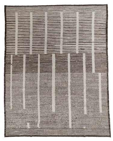 Reserved for SRI. 8 x 10 made to order 100% wool Tulu pile rug with a contrasting color way and geometric pattern. soft underfoot. Please allow 8-10 weeks for delivery. Rush requests are available for an additional fee.
