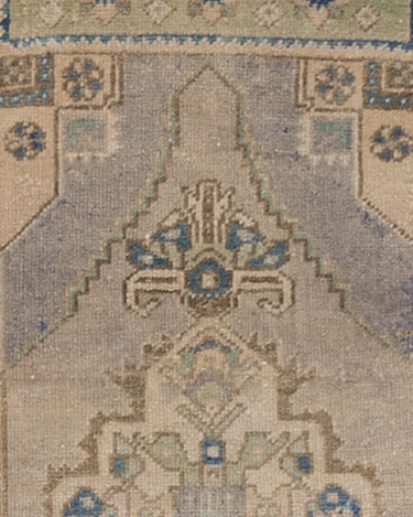Colors: sand, pale lavender-gray, blue, mint