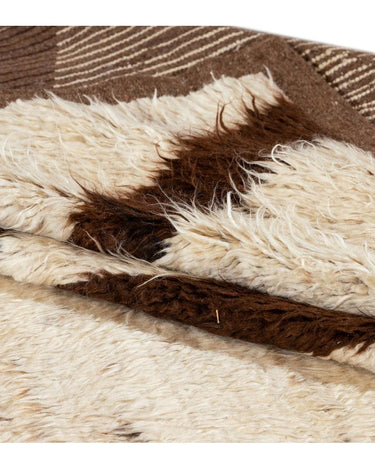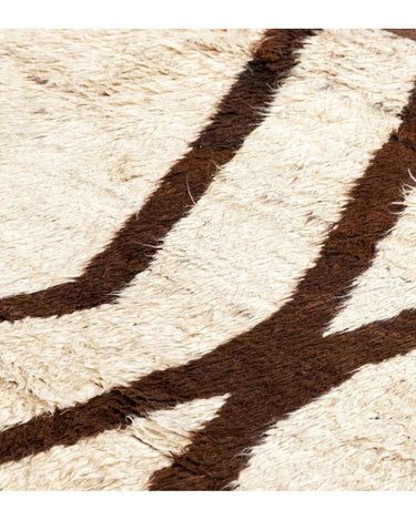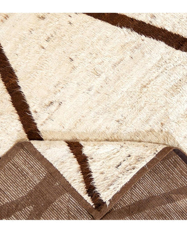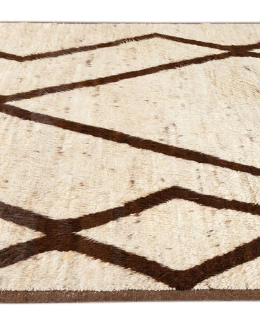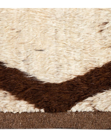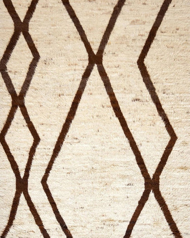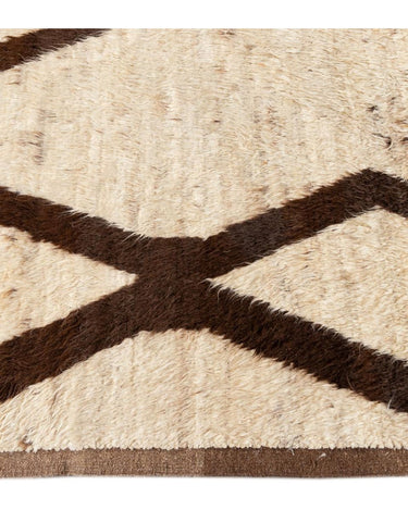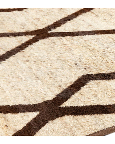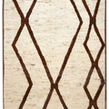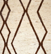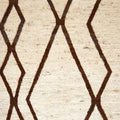 Beautiful Contemporary Moroccan style Rug, hand-knotted wool with an ivory field, geometric brown accents in an allover tribal design.