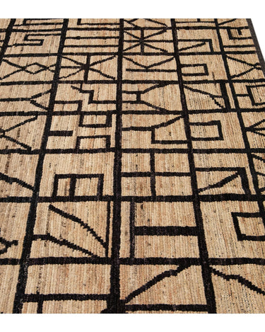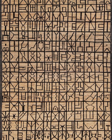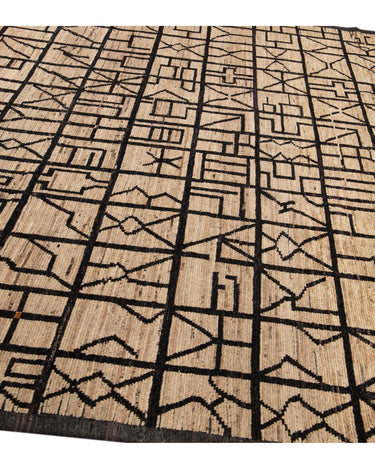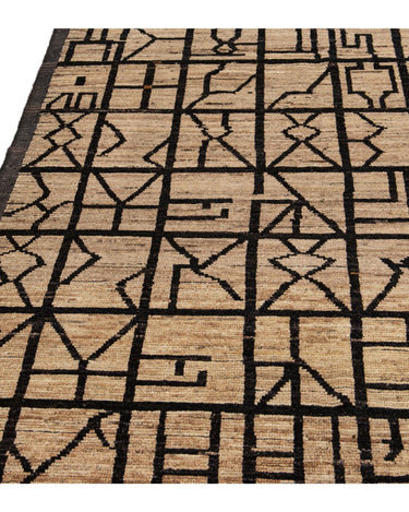 Beautiful Moroccan style handmade wool rug with a beige field. This Modern rug has brown accents featuring a gorgeous all-over geometric boho design.