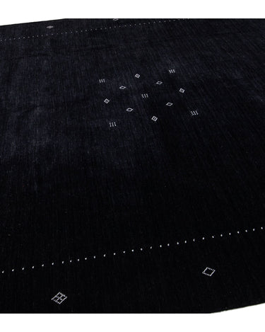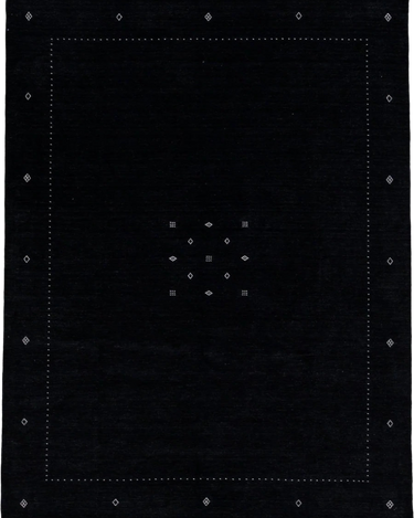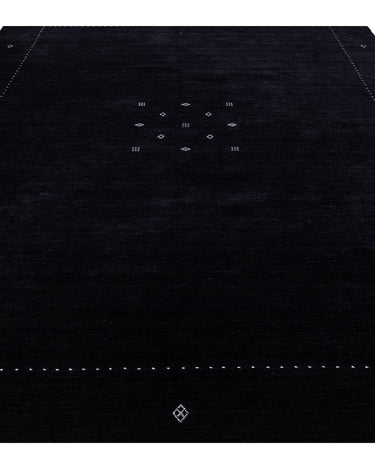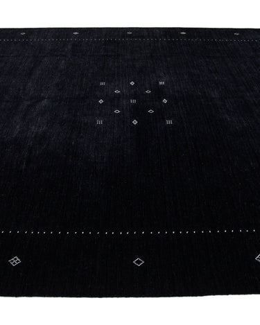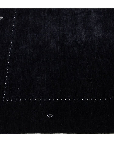 Beautiful modern Gabbeh style hand-knotted wool rug with black and white color accents in a gorgeously minimalist design.
