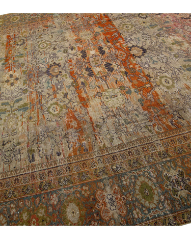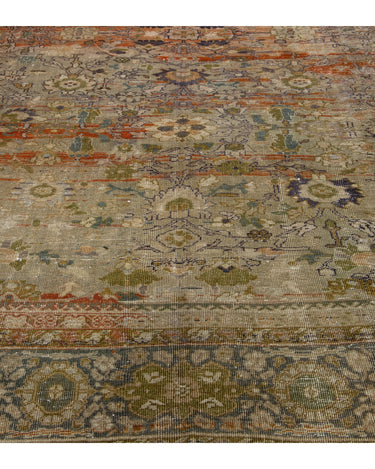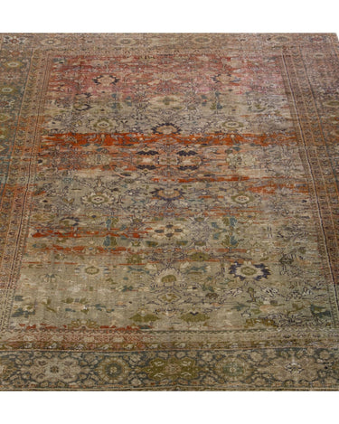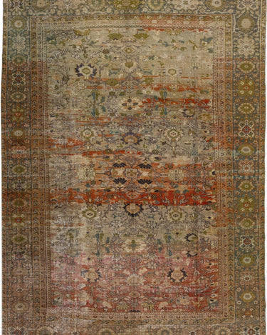 Beautiful hand knotted 1900s antique Sultanabad wool rug with a brown color field. This Persian rug has rust, green, and gray accent colors in an all-over floral design. This Classic rug design is made to last with a strong wool weave from hand-knotting and a timeless palette.