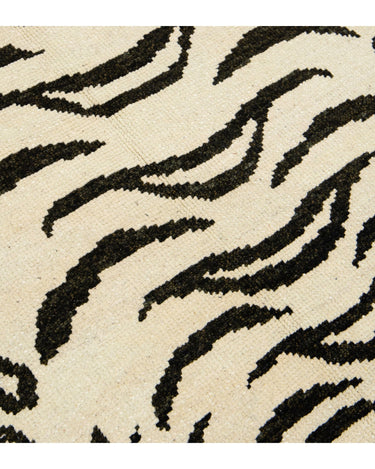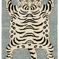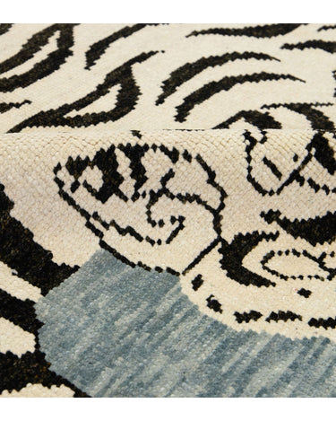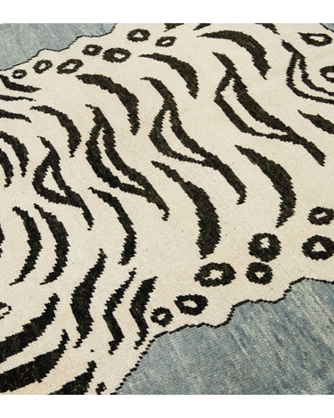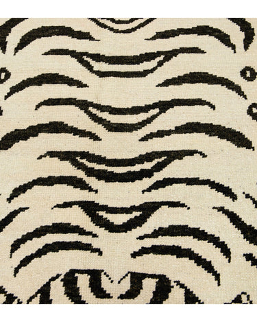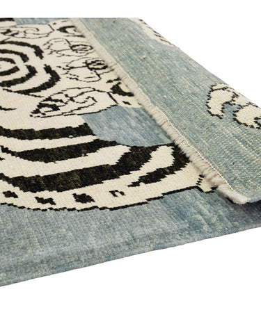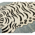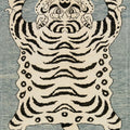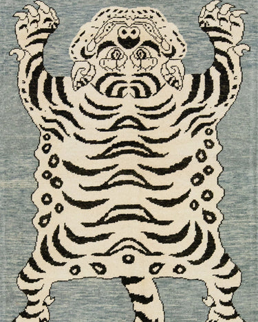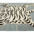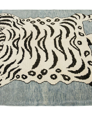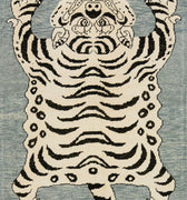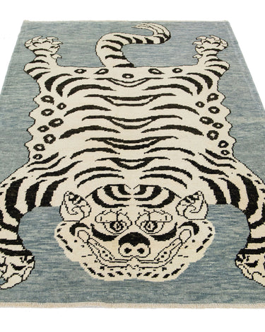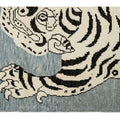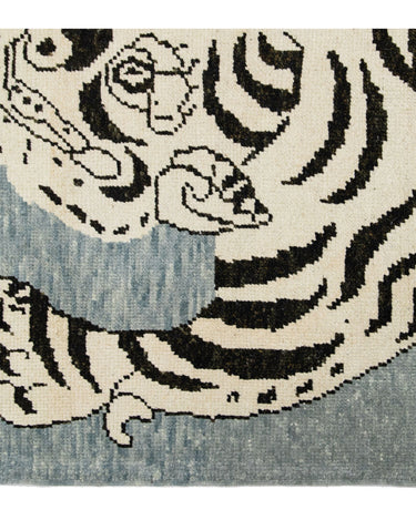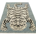 This beautiful Turkish Art Deco wool rug features a gray field with beige accent colors and a stunning tiger pictorial design.