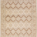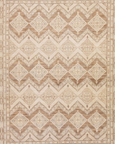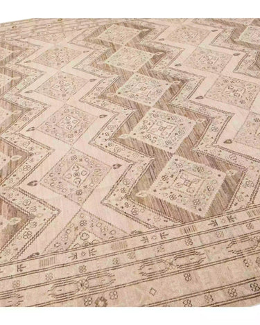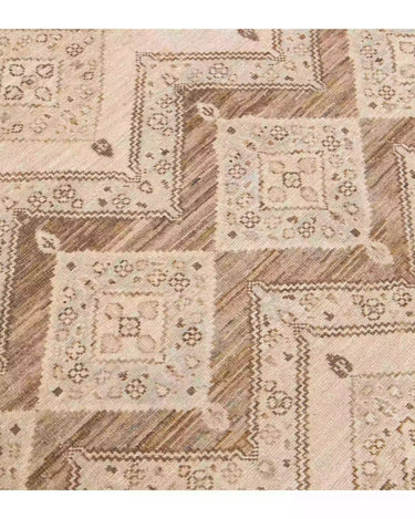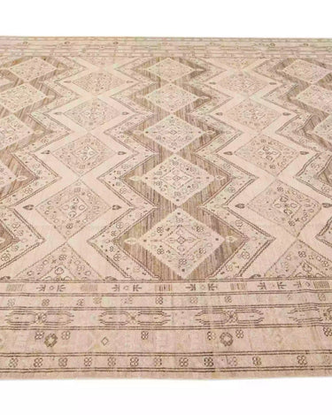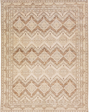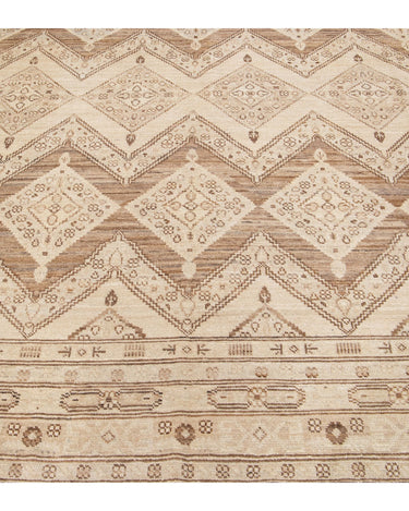 Beautiful modern Persian style Indian hand-knotted wool rug with a beige color field with brown and gray accents on a Classic geometric floral design.