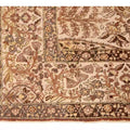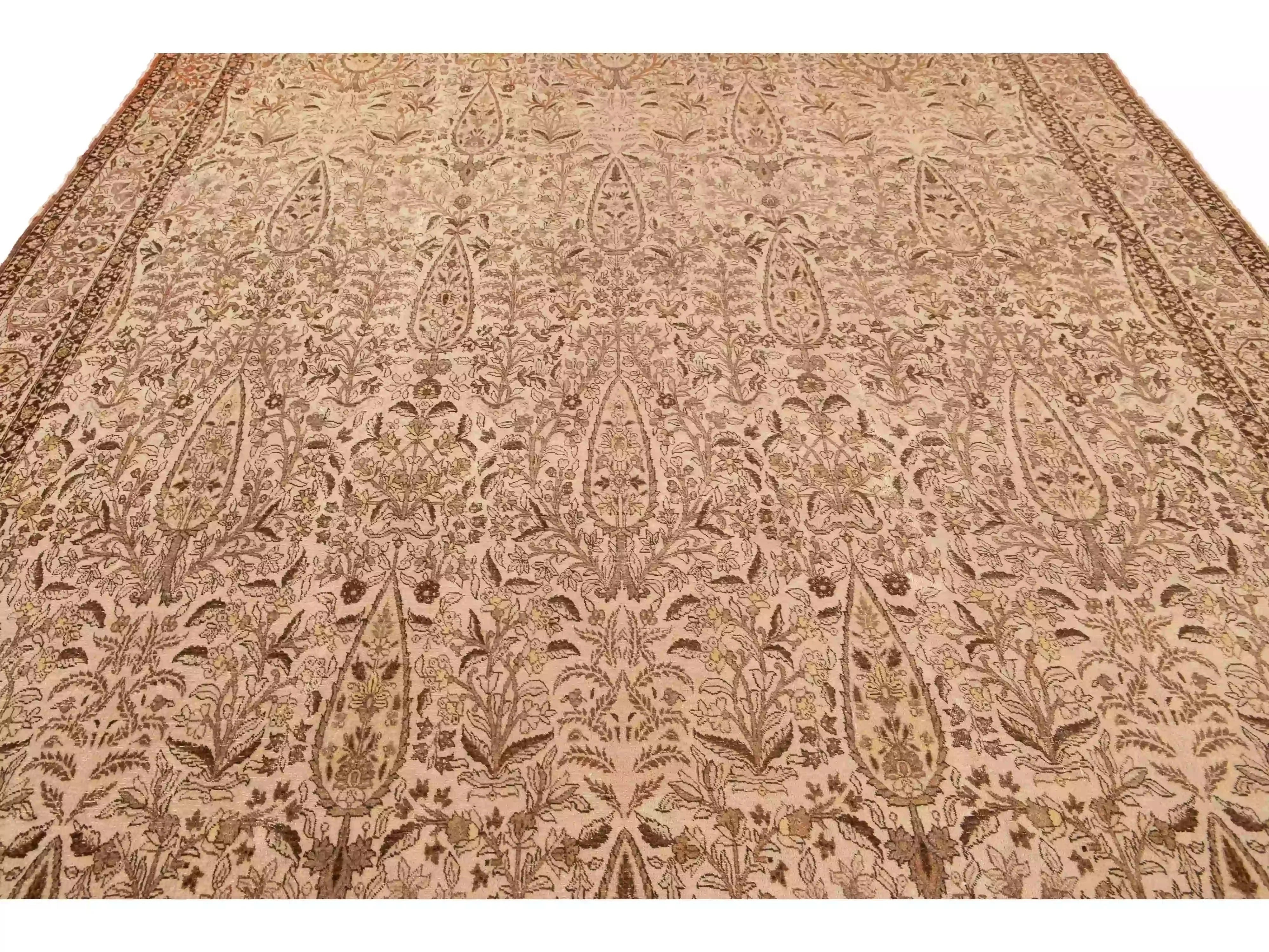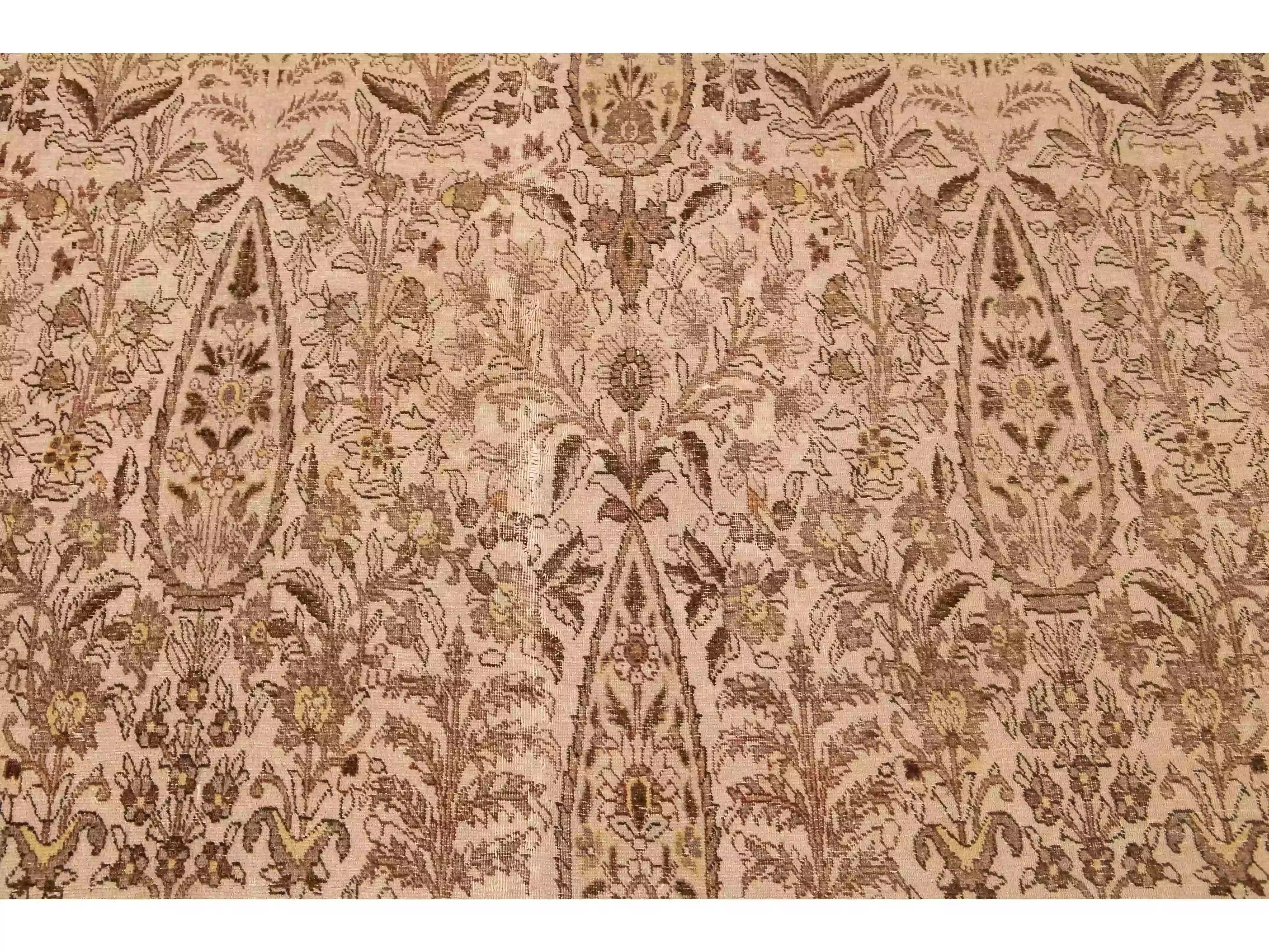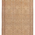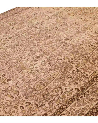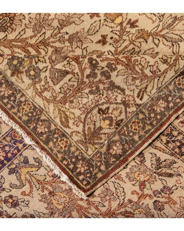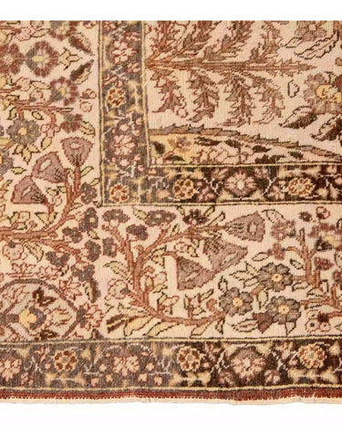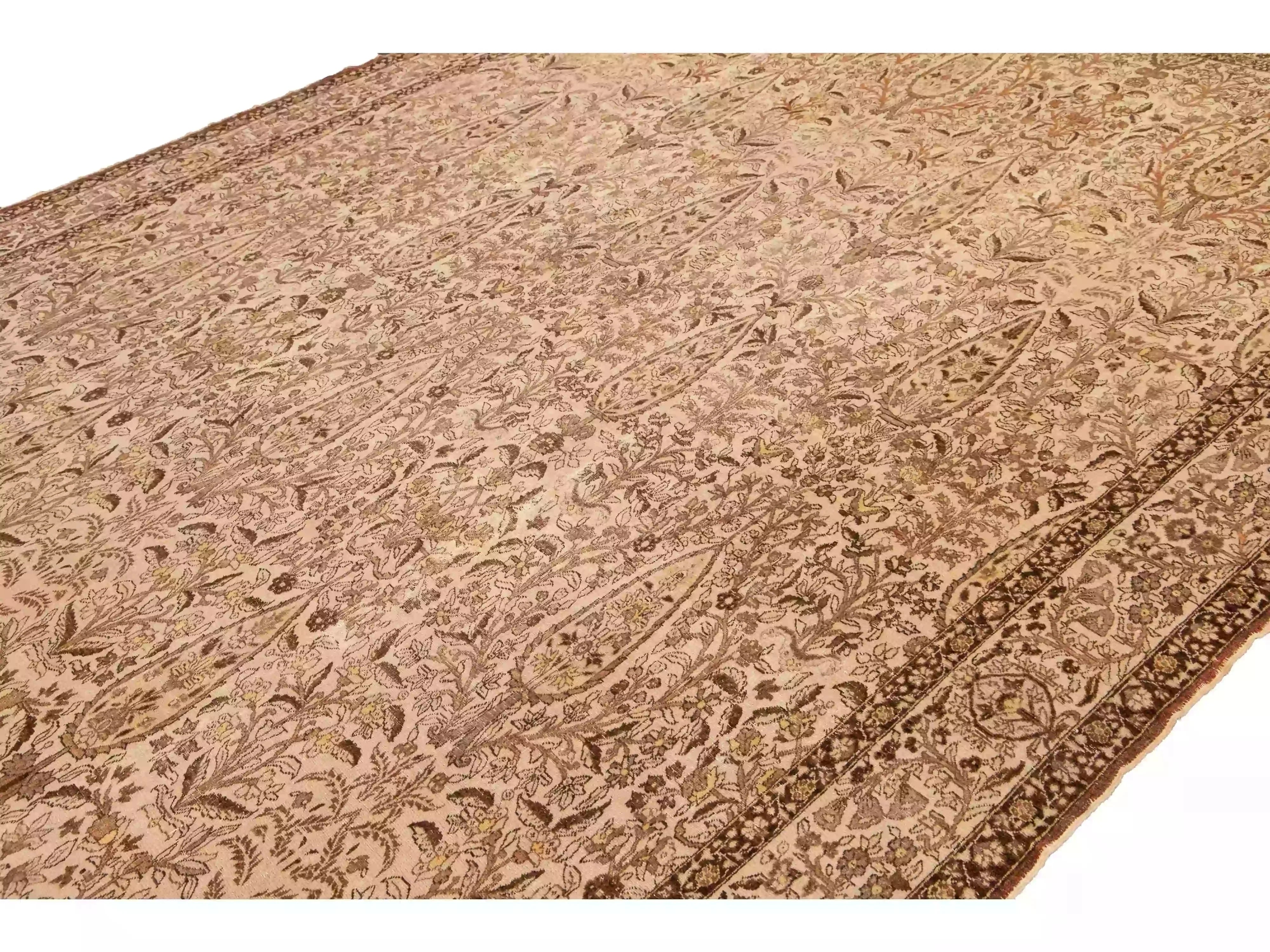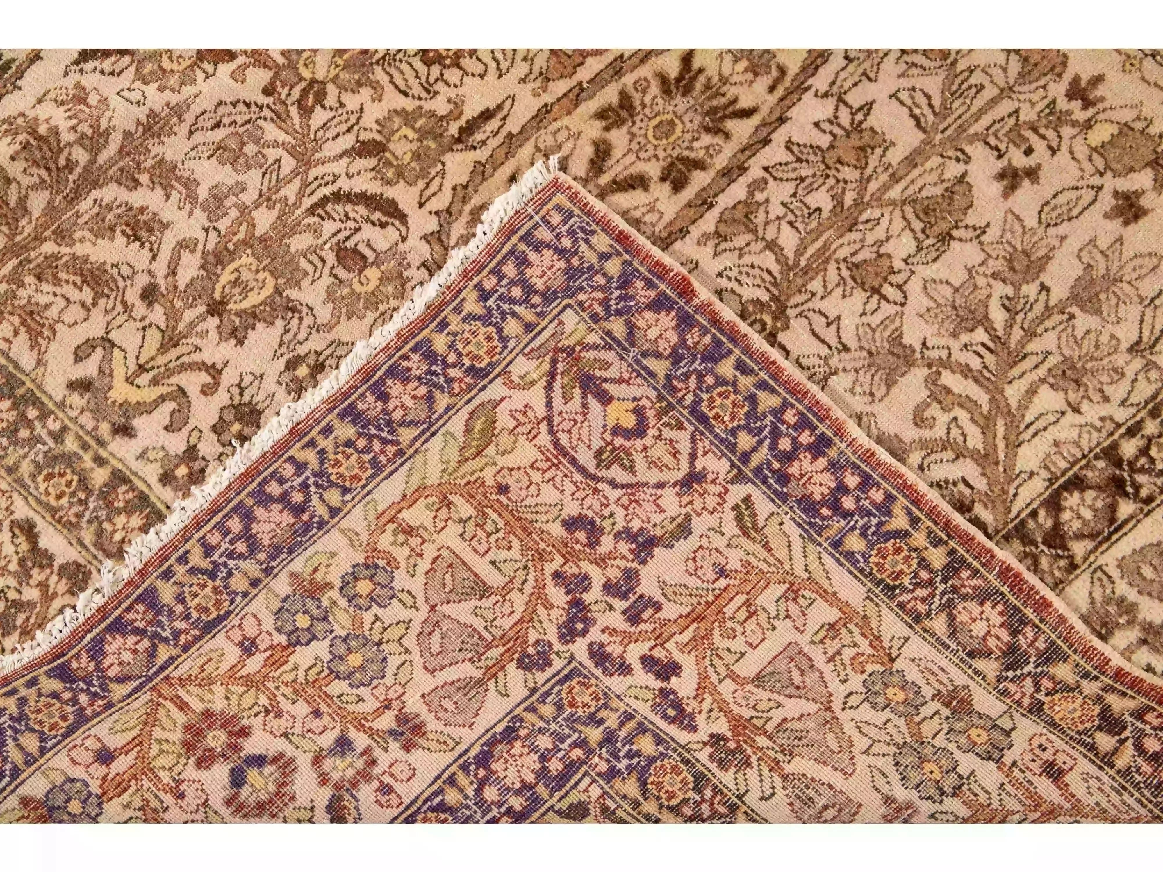 Beautiful vintage Persian distressed hand-knotted wool rug with a beige field. This piece has gray, rust, and yellow accents in a gorgeous all-over floral Pattern design.