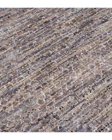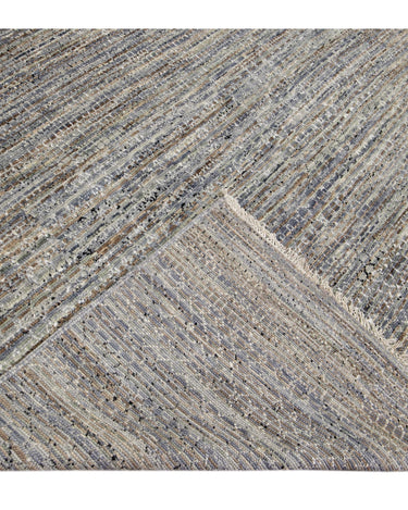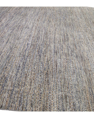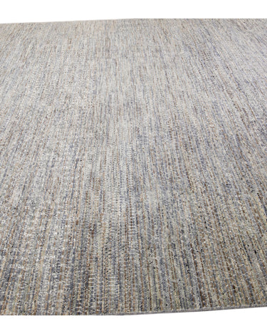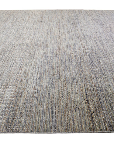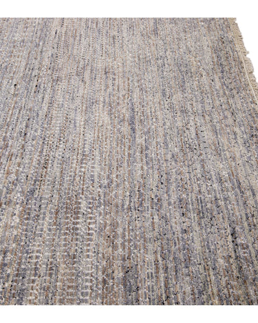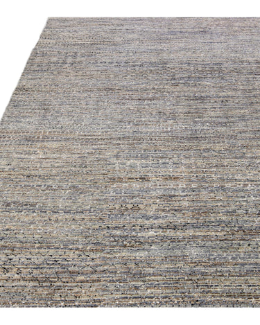 Beautiful Contemporary Savannah hand-knotted wool rug with a finely detailed gray and beige field in an all-over white geometric pattern design.