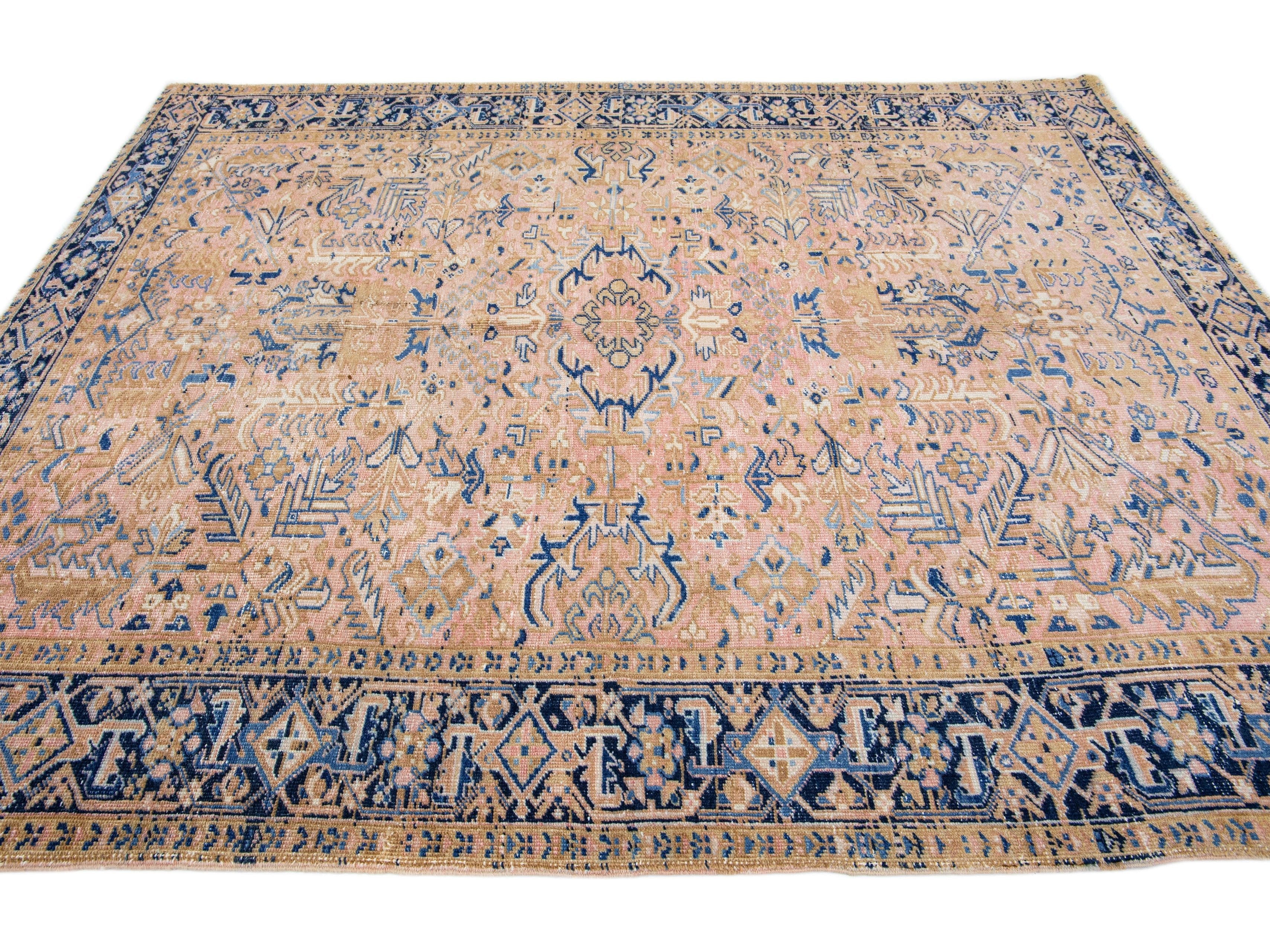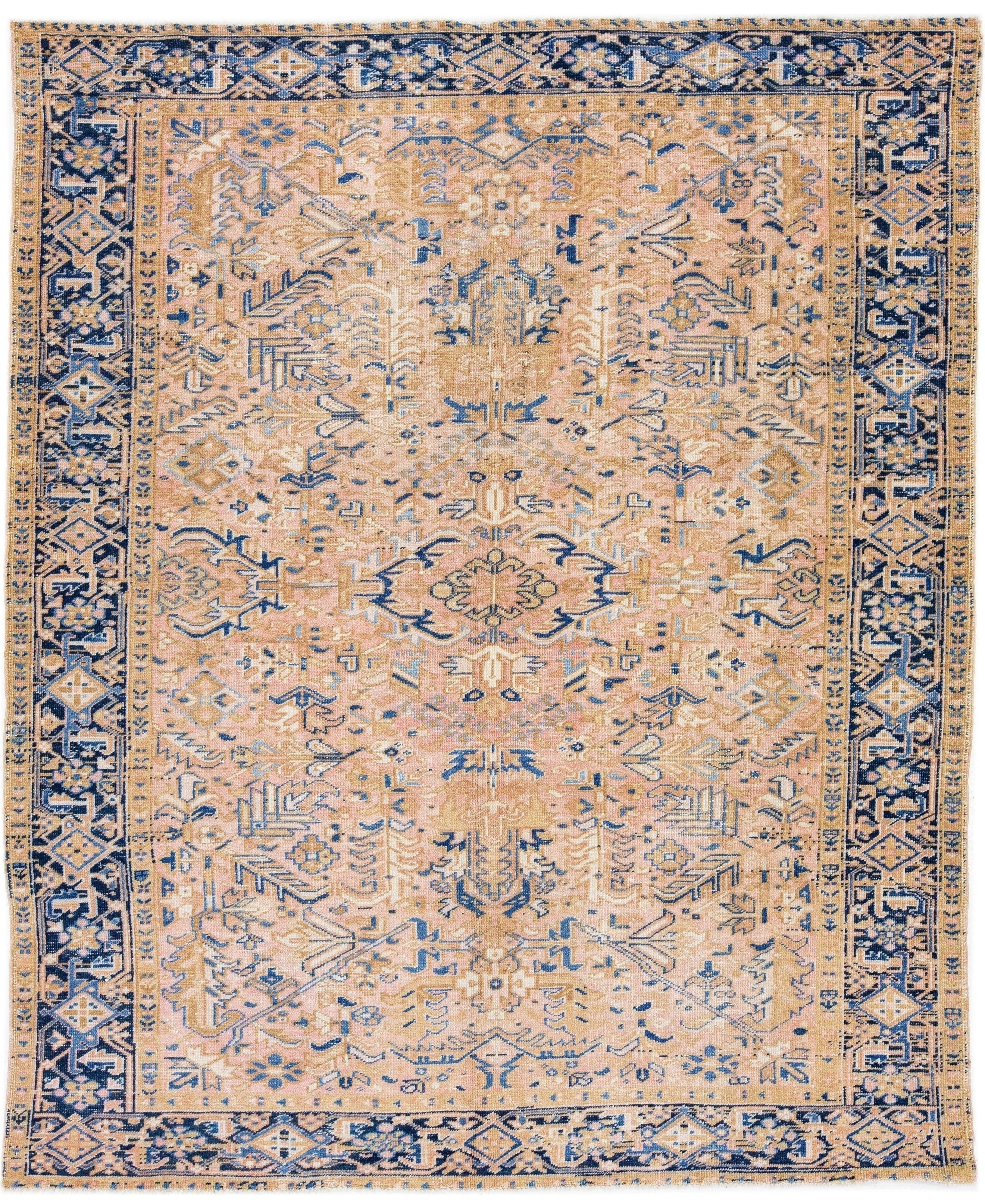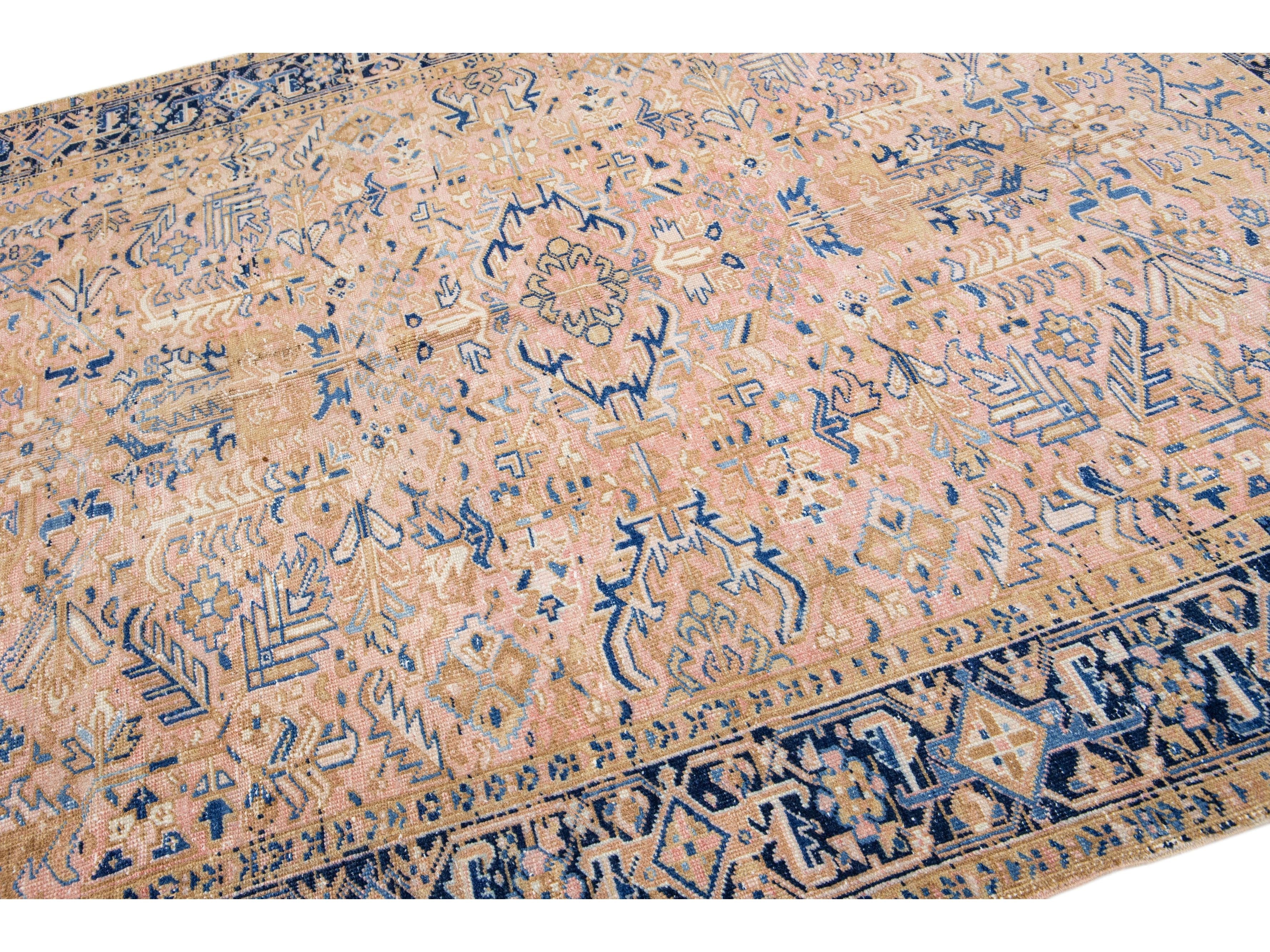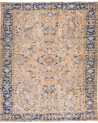 This handwoven Serapi rug features a central medallion with branching geometric motifs and an angular field framed by patterned borders. Produced in Northwest Iran in the late 19th to early 20th century, it is woven with a wool pile on a cotton foundation, representing the durable construction associated with Heriz-Serapi weaving. The large-scale design and structured layout are hallmarks of this tradition, which has maintained a lasting reputation for strength and artistry.