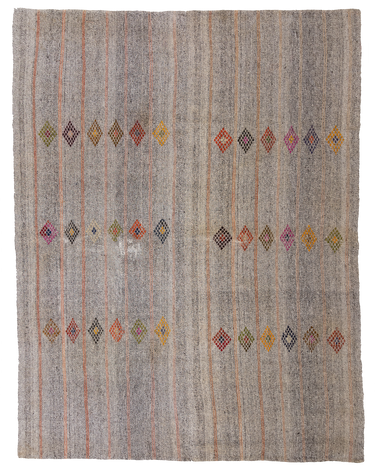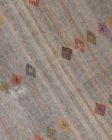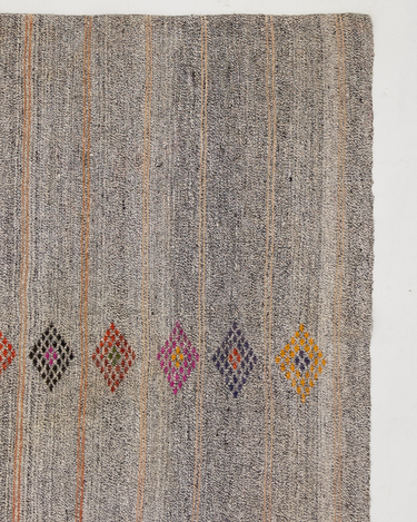 Midcentury Anatolian chaput flatweave rug with fun pops of color. Great for layering.