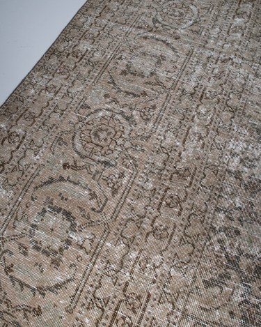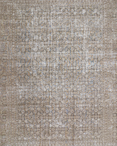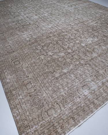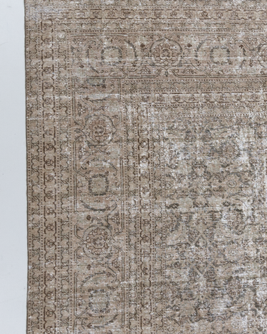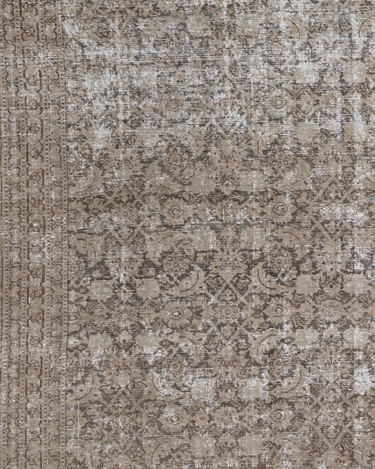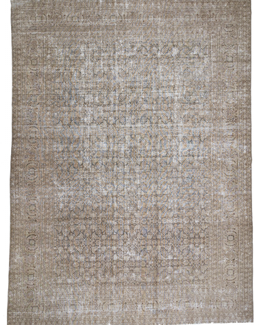 Classic vintage Persian Tabriz with an all over herati pattern. Portobello toned field with a gray design that is a designer's dream for styling. Safe for high traffic with a heavy feel. Even colors and wear.