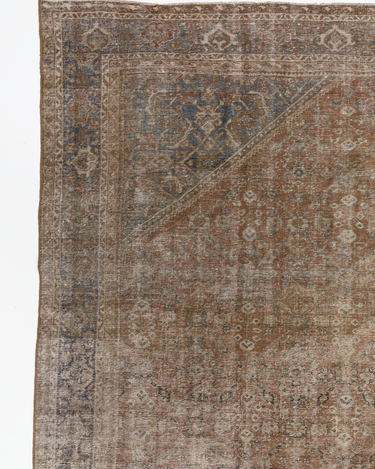 Beautiful warm toned Mahal with a closely woven herati design and lovely wear. Soft underfoot.