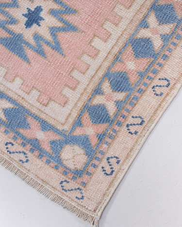 Soft and in great condition, vintage turkish rug with a soft pile. made by hand This handmade rug features intricate patterns from traditional Turkish craftsmanship with a subtle, faded color palette that will bring a hint of elegance and vintage charm to your decor.