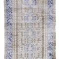 This Vintage Turkish Kula Rug is completely hand-knitted and dates back to the 1930s. It features traditional blue and gold tones and is a runner rug, perfect for adding a touch of history to any room.