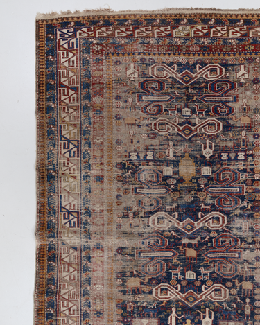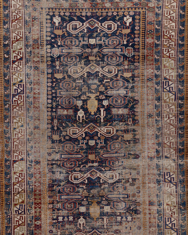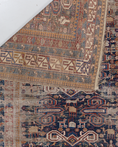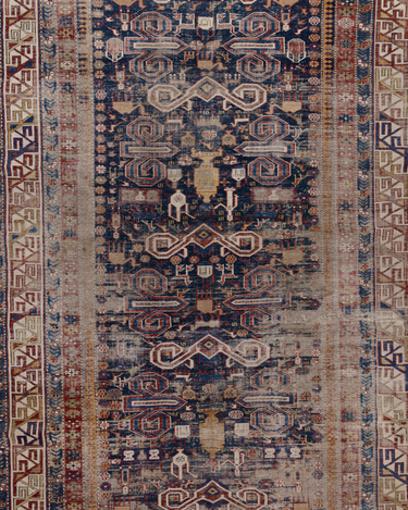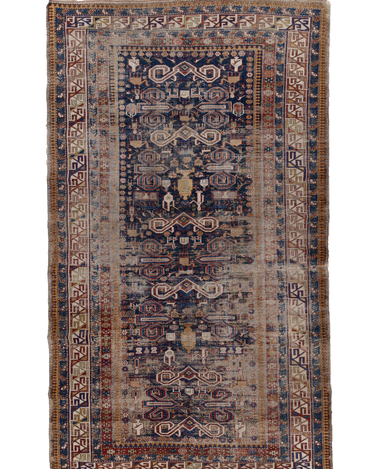 Beautiful deep blue field Caucasian Shirvan rug from the late 19th century with wonderful history and soul. Antique Shirvan rugs, originating from the ancient city of Shirvan in present-day Iran, are adorned with intricate and meaningful symbols. These symbols, woven into the fabric, tell captivating stories of the region's rich history and cultural heritage. Each symbol carries its own significance, such as the tree of life symbolizing fertility and abundance, the dragon representing power and protection, the medallion symbolizing unity and cosmic harmony, and the cypress tree symbolizing eternal life and spirituality. These timeless symbols reflect the deep-rooted traditions and beliefs of the people who created these remarkable rugs centuries ago.