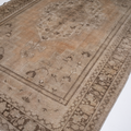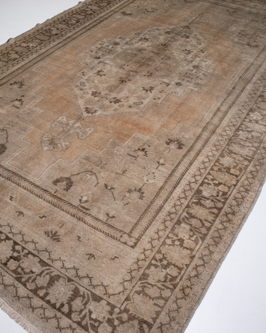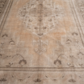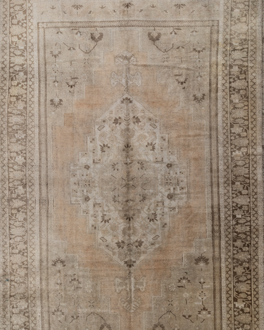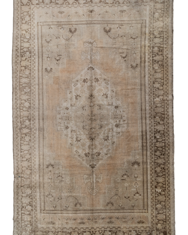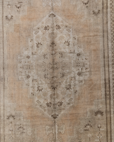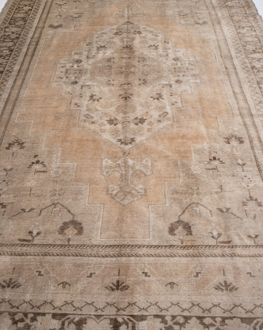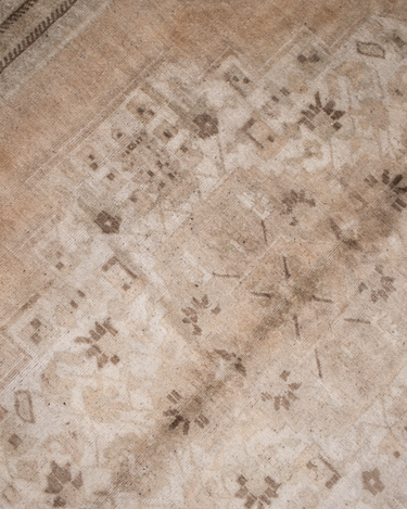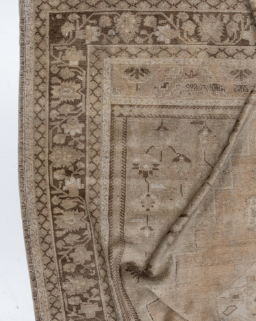 A beautiful antique Turkestan Khotan rug with a tan field peach and brown accents in central medallion design.