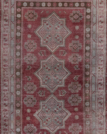 Early 20th century Samarkand in excellent condition. Crimson red field with olive, brown, and dark gray accents.
