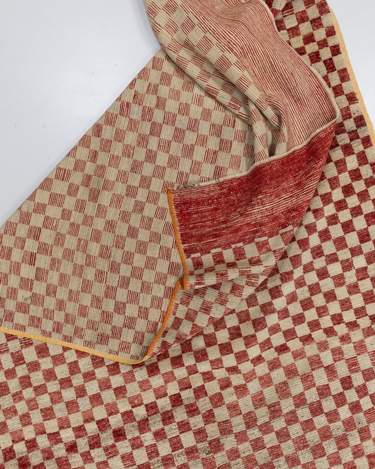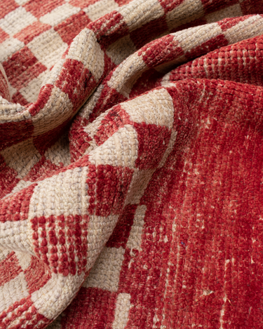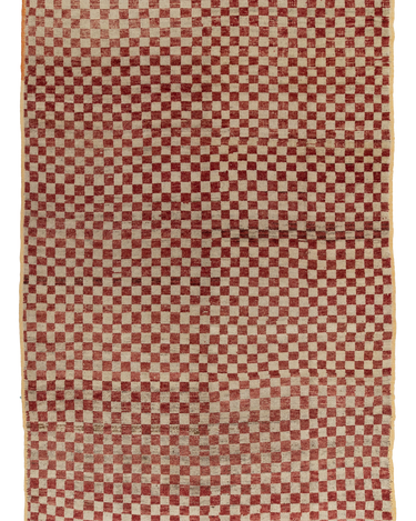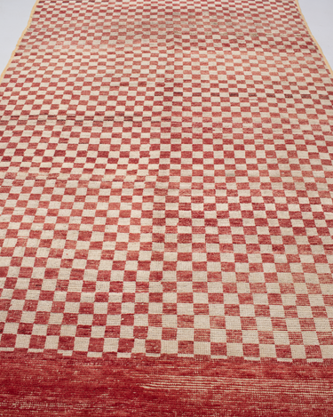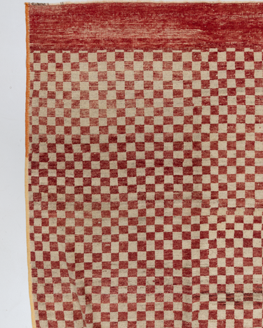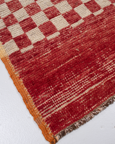 Quirky but classic vintage tulu rug featuring a checkerboard design, expertly crafted using traditional methods.
