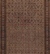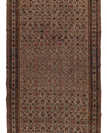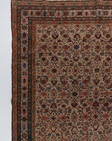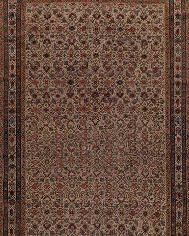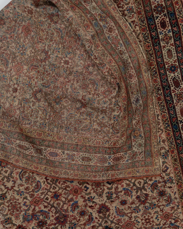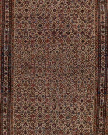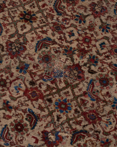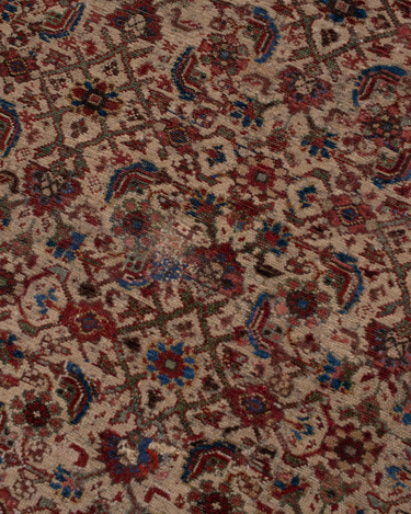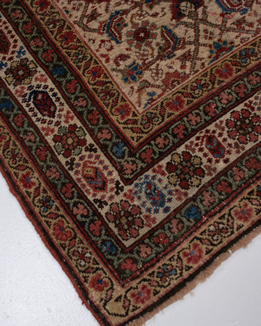 Antique Malayer with traditional colors that have been lightly faded by the sun.