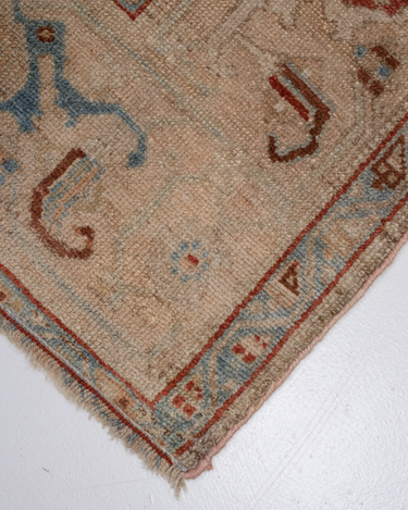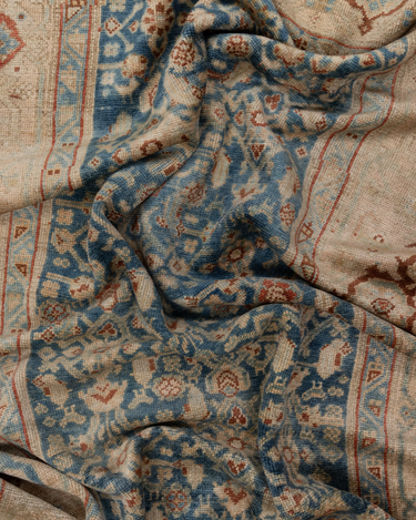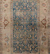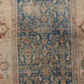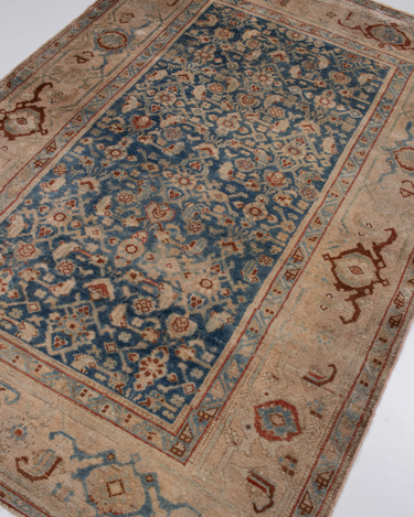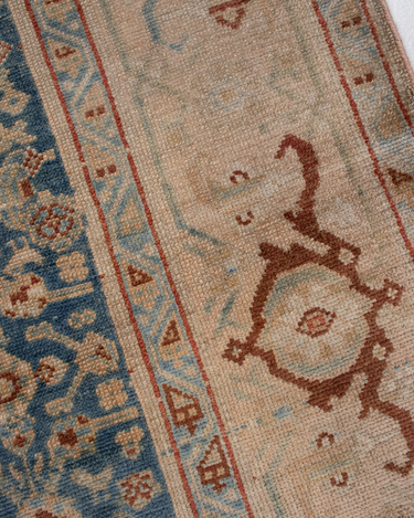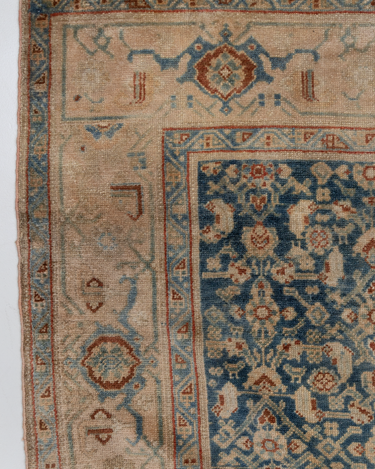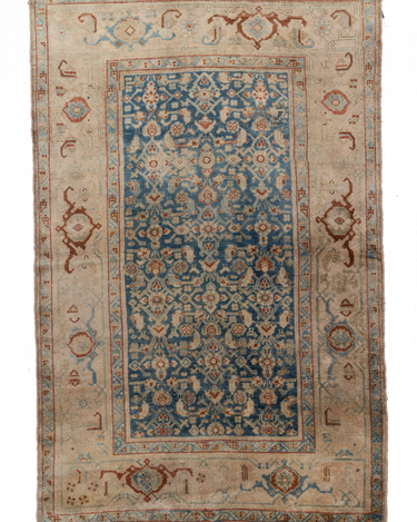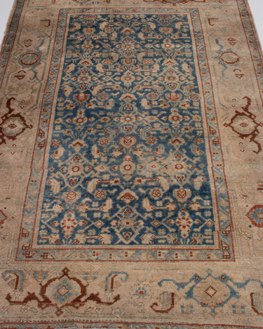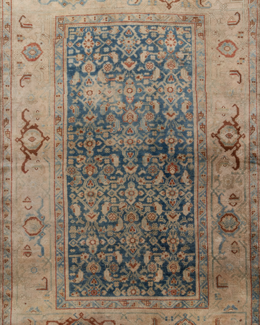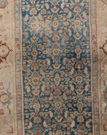 This stunning antique Persian Malayer rug is crafted from high-quality wool on a cotton base. Featuring a soft cream base with vibrant blue tones, this rug is sure to bring a subtle sophistication to any home. Originating from the famed Malayer region, this rug is truly a classic.