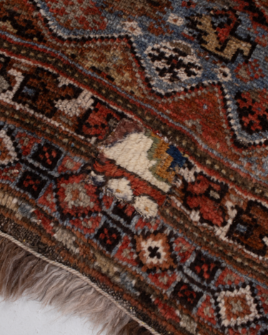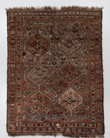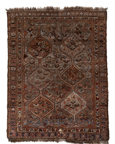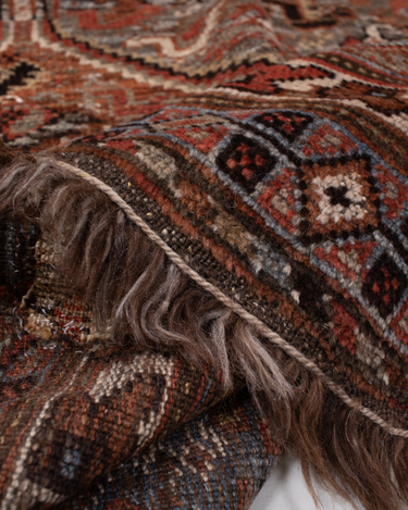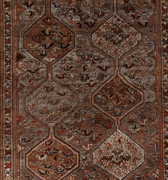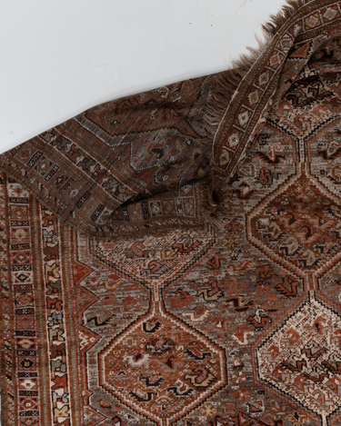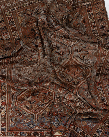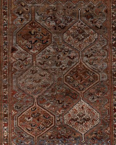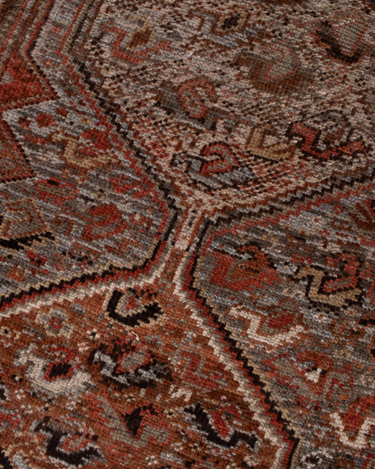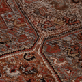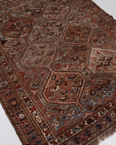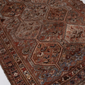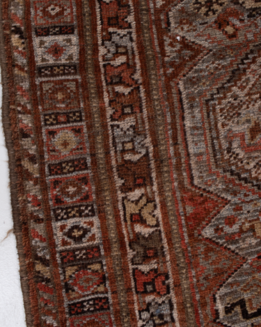Classic brick hue and intricate 6 medallion design. Handcrafted in the Shiraz region.