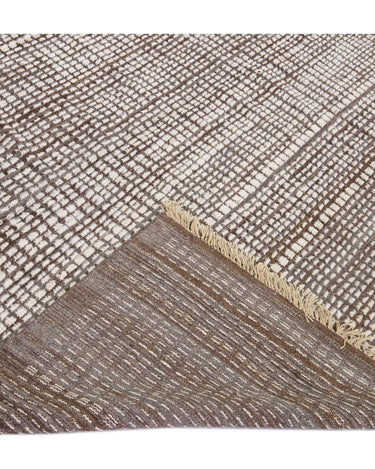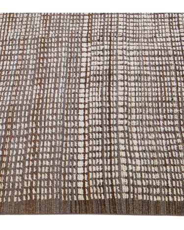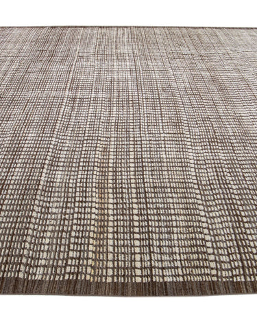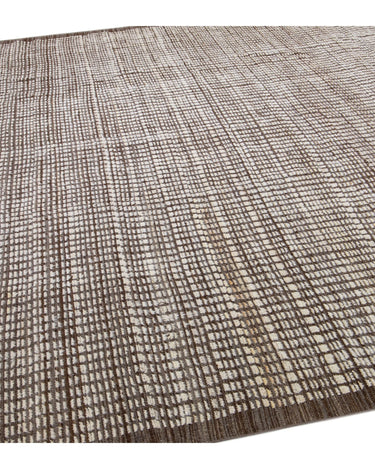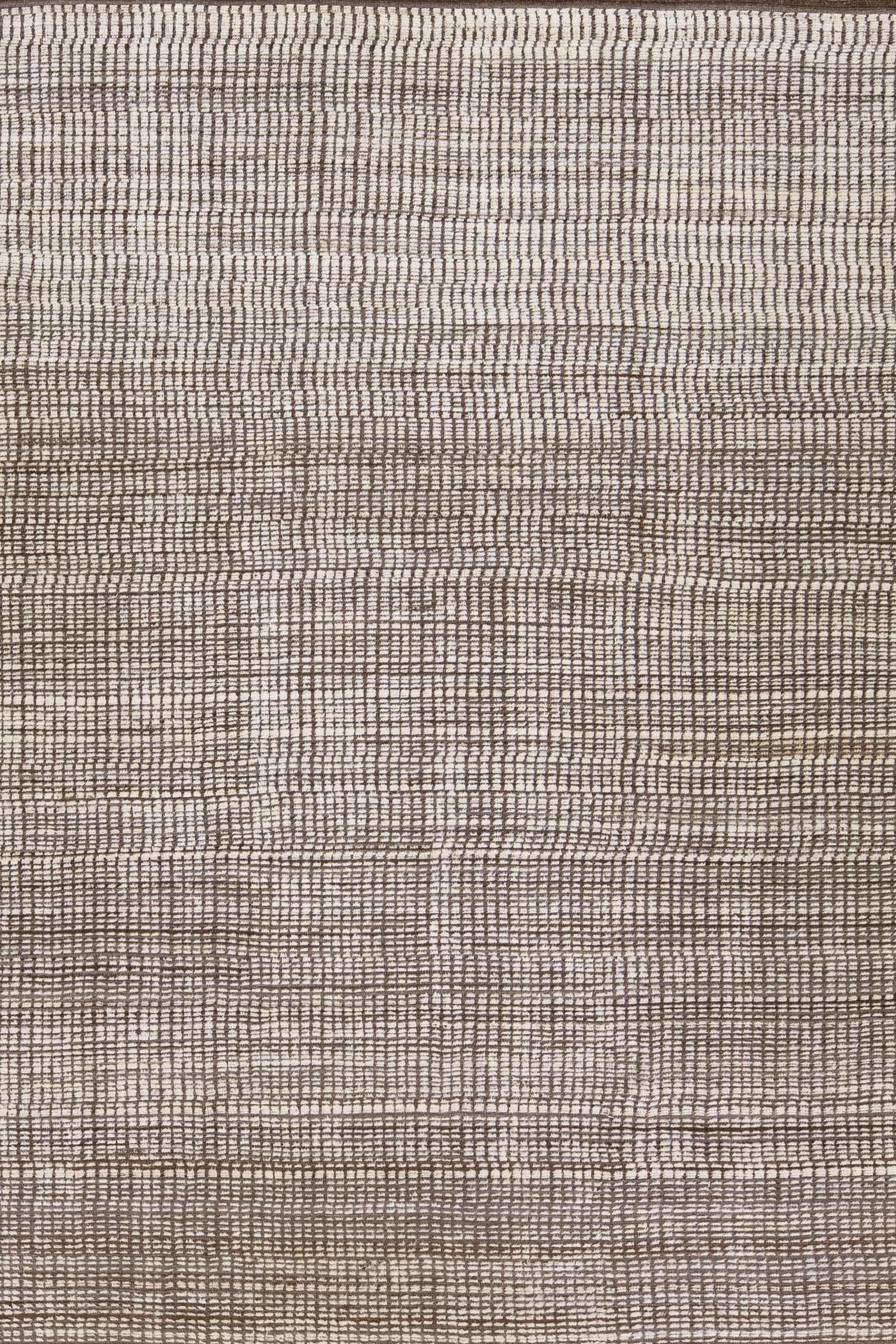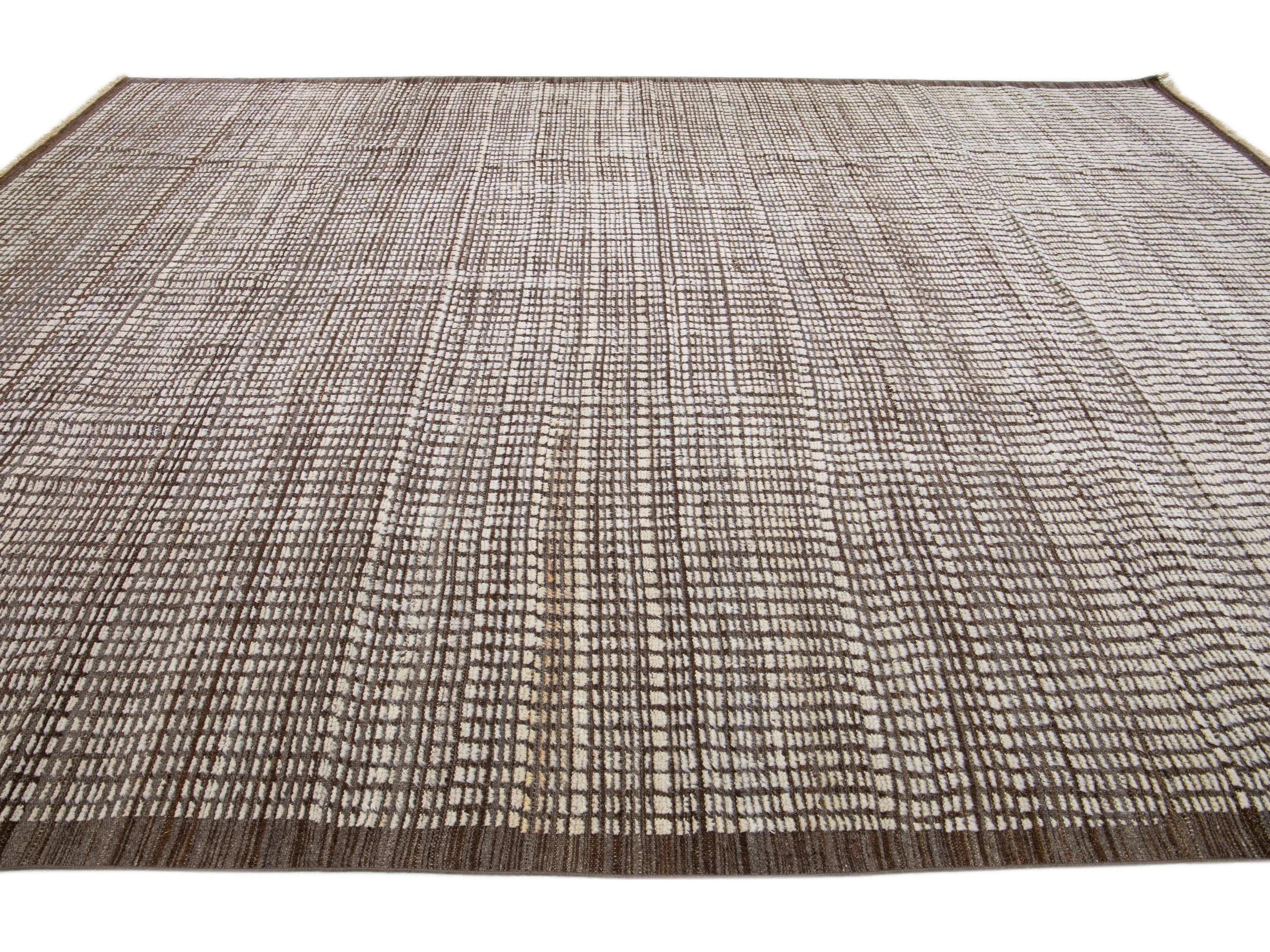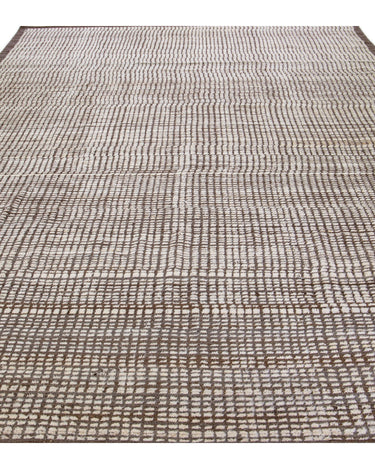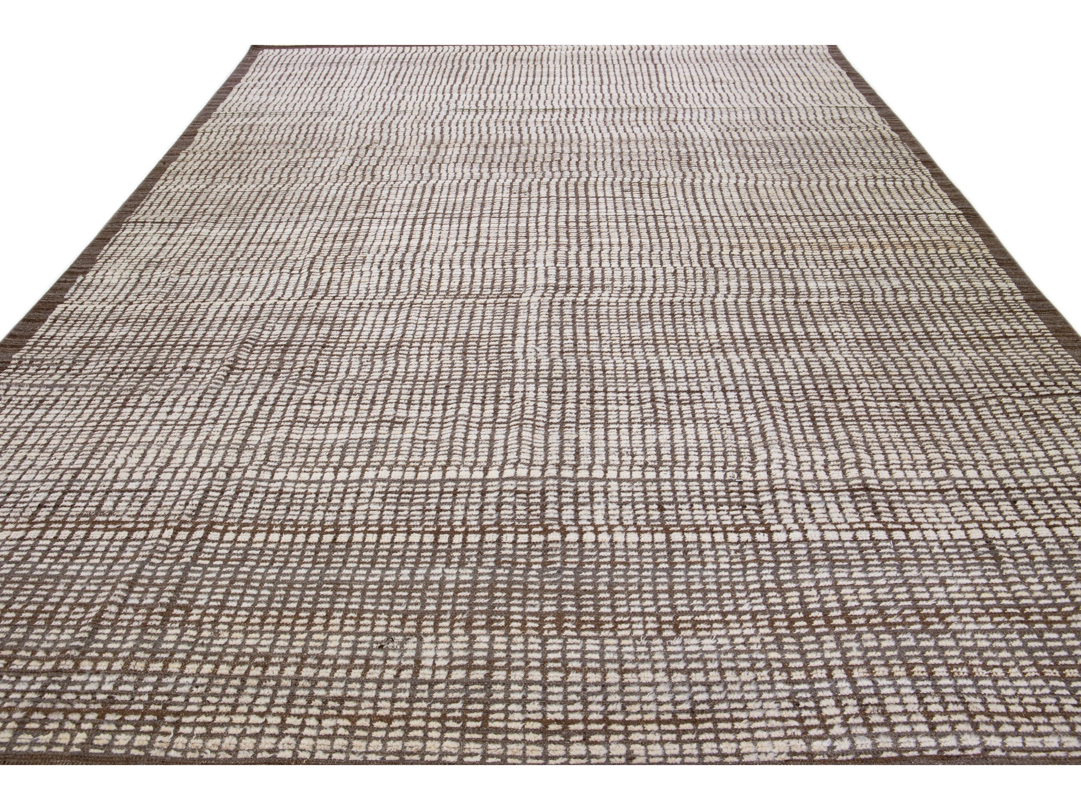 Beautiful modern Moroccan style hand-knotted wool rug with a brown field. This piece has a gorgeous subtle geometric pattern design.