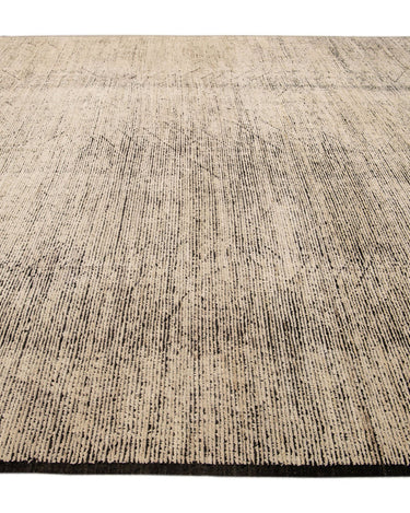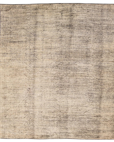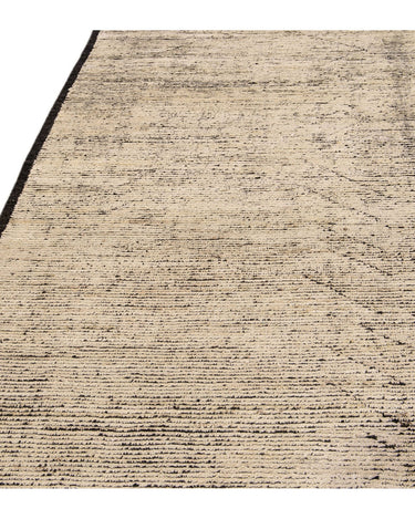 Beautiful Moroccan style handmade wool rug with a beige field. This Modern rug has brown accents featuring a gorgeous all-over tribal design.