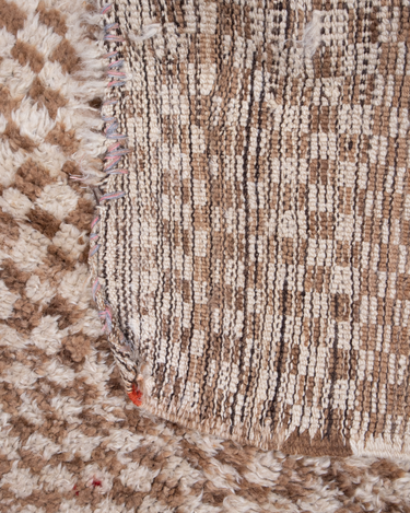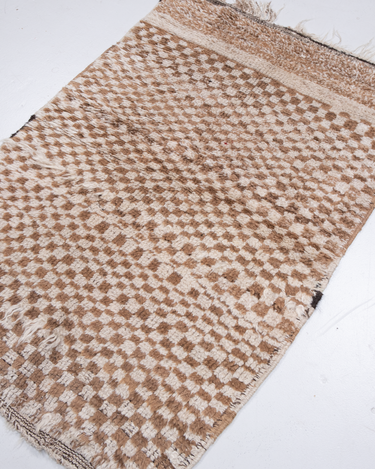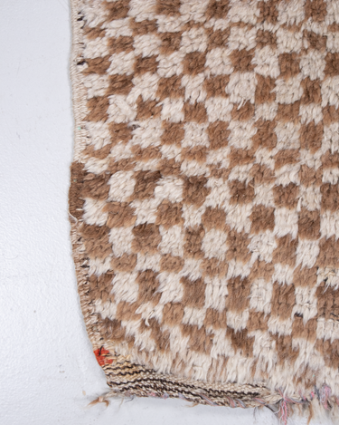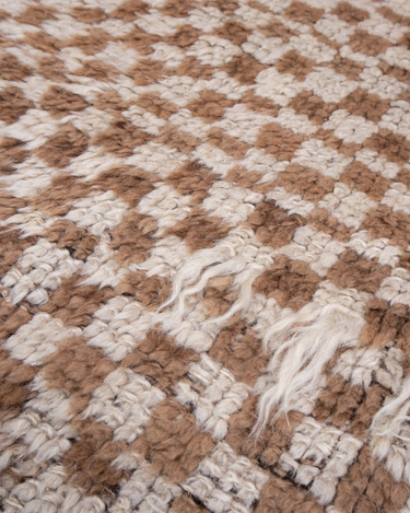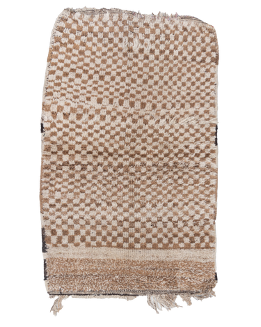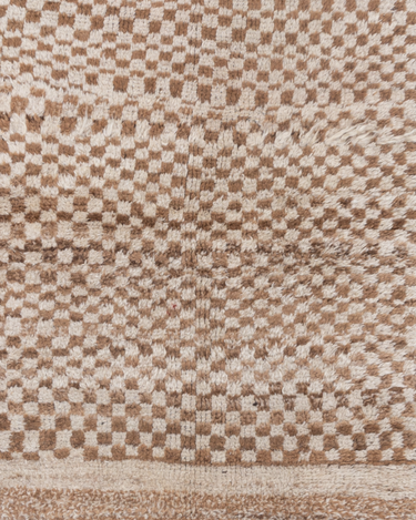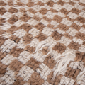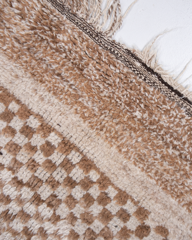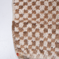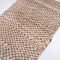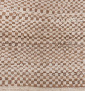 Woven in the second quarter of the 20th century, this antique Turkish Tulu features a classic checkered pattern in a warm tan and cream colorway. Recommended for low traffic areas or for framing.