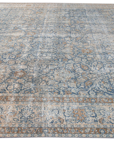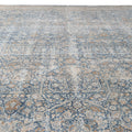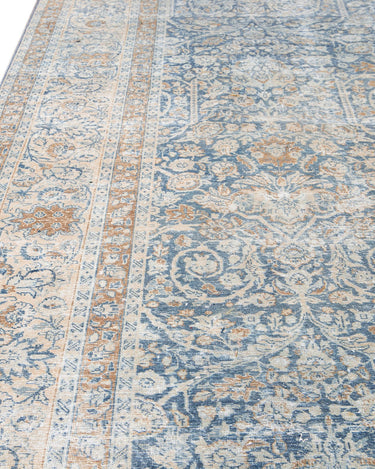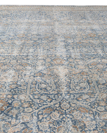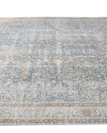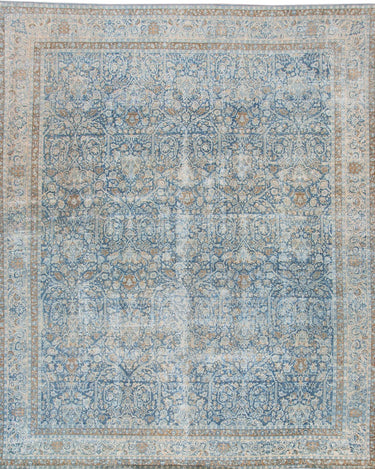 Beautiful antique oversize Tabriz hand-knotted wool rug with a blue field. This rug has a peach frame and brown accents in a gorgeous all-over distressed shabby chic floral design.
