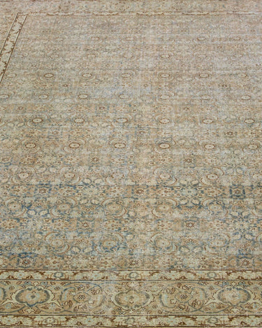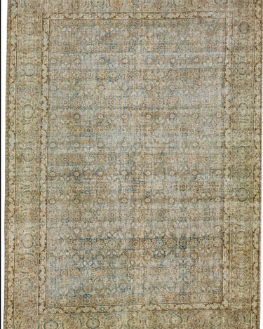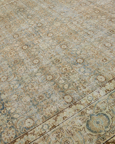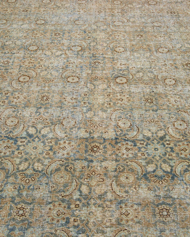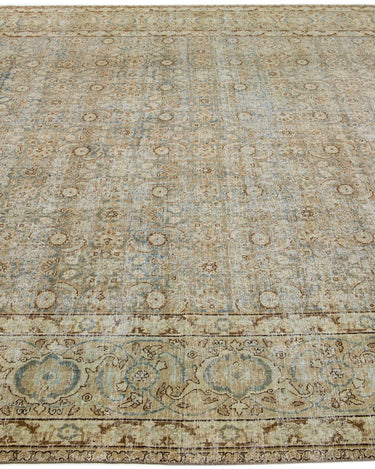 This magnificent hand-knotted Persian Tabriz wool rug boasts a stunning traditional Allover floral design with a tan accent against a vibrant blue field. An antique masterpiece, this rug is an actual work of art that will surely add elegance to any interior space.